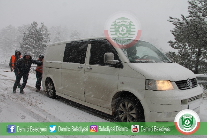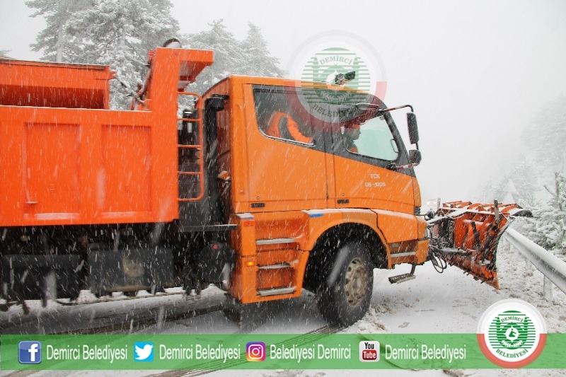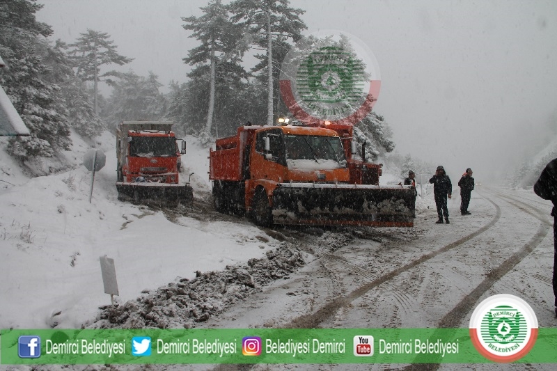 Demirci İlçe merkezinde de öğle saatlerinden itibaren hafif kar yağışı görülürken, Demirci Belediyesi ekipleri de kar yağışına karşılık kar temizleme ve tuzlama çalışması için ekiplerini hazır halde bekletiyor.
