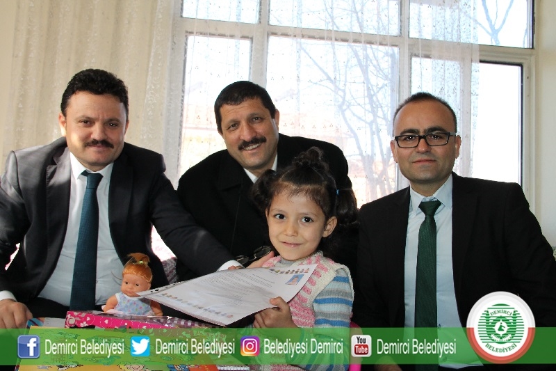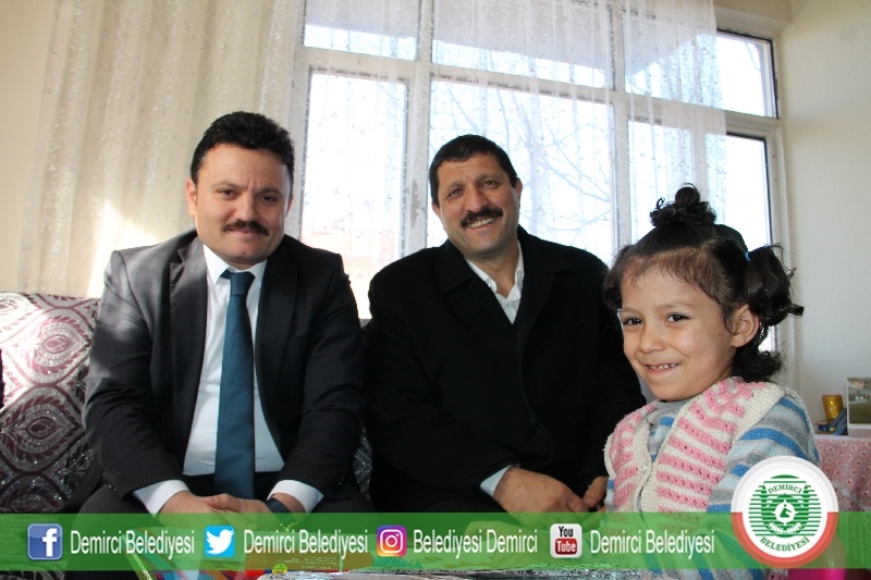 Demirci Kaymakamı Mutlu Akyol ve Belediye Başkanı Selami Selçuk, 2017-2018 eğitim öğretim yılı yarıyıl döneminde evde eğitim hizmetlerinden yararlanan anaokulu öğrencisi Fadime Nur Elmalı’yı Beyazıt mahallesindeki evinde ziyaret etti.