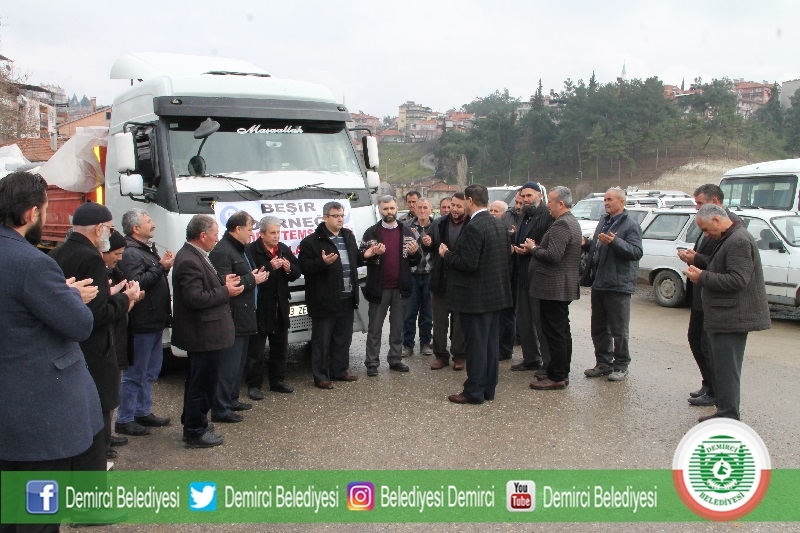 Demirci Beşir Derneği tarafından başlatılan kampanya ile Demirci Belediyesi ve vatandaşların desteği ile " Zeytin Dalı Harekatında " bulunan güvenlik güçlerine ekmek ve yiyecek desteği için ilçede toplanan 500 çuval un tıra yüklendi.