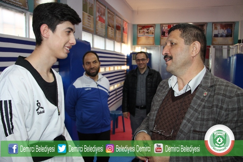 Belediye Başkanı Selami Selçuk'ta, müsabakalardan gelen Demirci Belediyespor Taekwondo sporcularını spor salonunda yapılan antrenmanına katılarak tebrik etti.