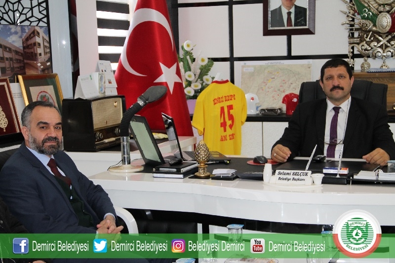 Demirci Belediyesi ve Meslek Yüksek Okulunca hazırlanan programa katılan Metin Özçeri, Demirci'yi ziyaretinde ilk olarak belediyeye gelerek Belediye Başkanı Selami Selçuk'u makamında ziyaret etti.