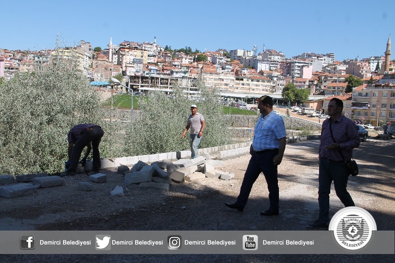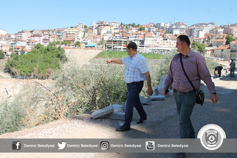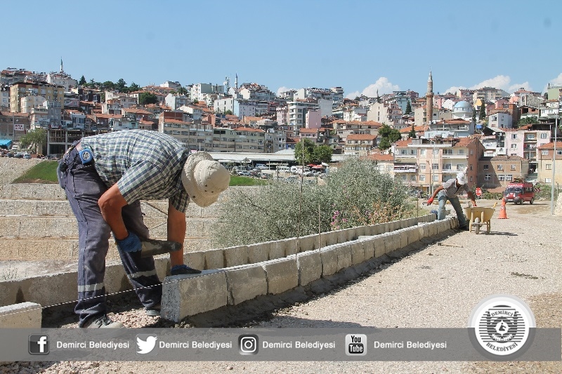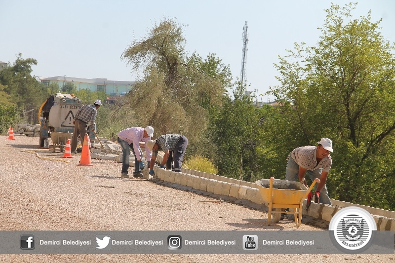 Demirci'nin gelecek yüzyıllarına hizmet verecek, ilçedeki trafik sıkışıklığına çözüm olan yeni çevre yolunda yayalar için düzenlemelere başlandı.