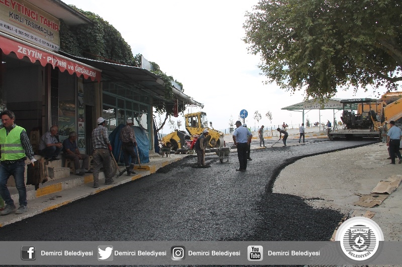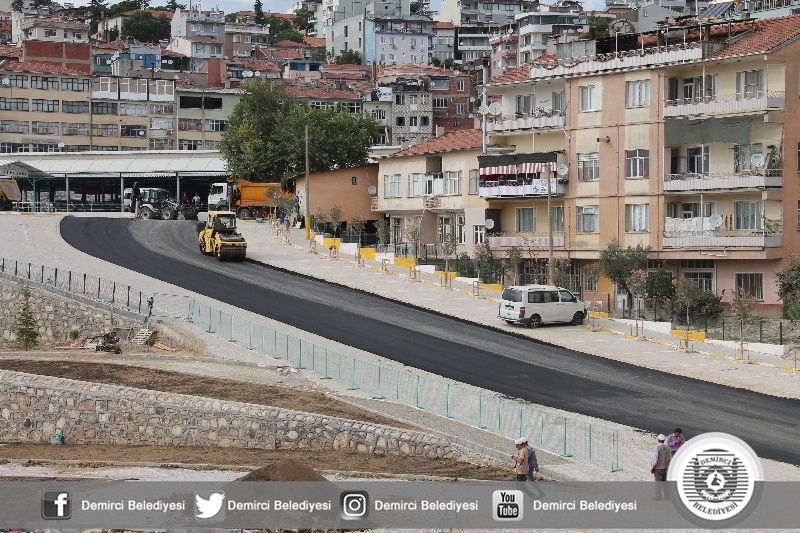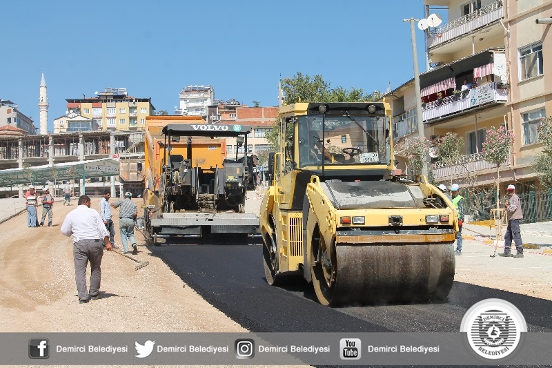 Demirci Belediyesince İlçemiz pazaryeri alanında devam eden yaşam alanı düzenlemeleri, yeni çevre yolu çalışmaları hızla sürerken, diğer yandan da Düvenönü cami arkasından pazaryerine çıkış için yapılan yolda stabilize malzeme ve asfalt zemin malzemesi serilmesinin ardından Belediye Başkanı Selami Selçuk tarafından sıcak asfaltın atımına start verildi.