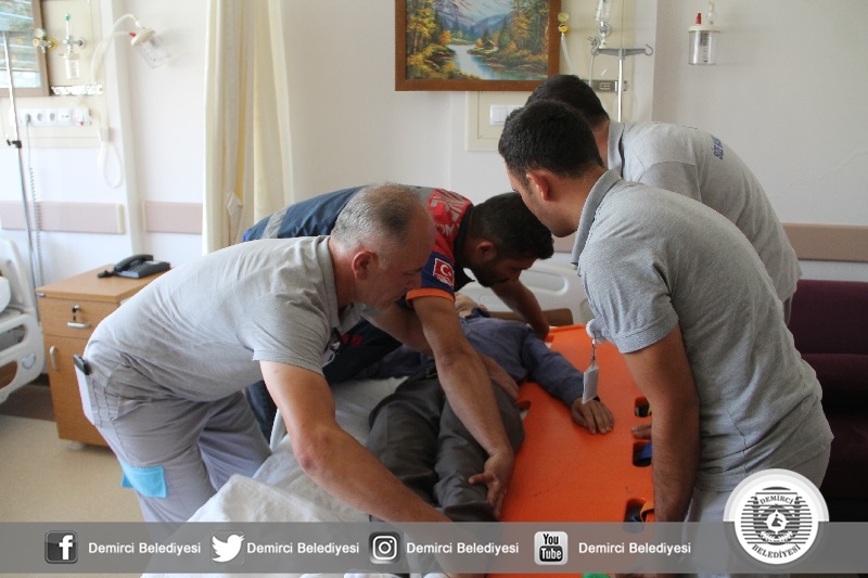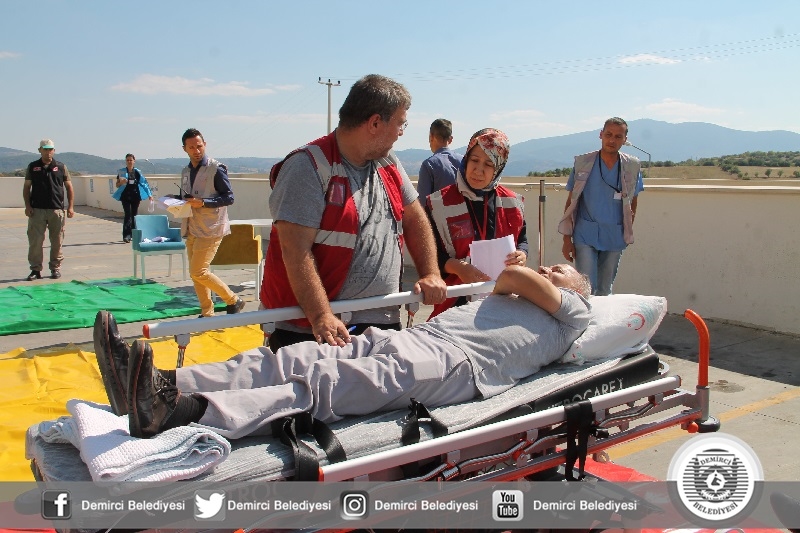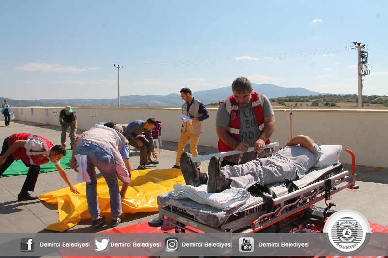Demirci Devlet Hastanesi bünyesinde düzenlenen tatbikata UMKE ve Demirci Belediyesi Arama Kurtarma timleri katıldı. Yaklaşık 20 sağlık personelinin yer aldığı tatbikatta depremde göçük altında kalan yaralılar kurtarılırken, hastanede çıkan yangında da içerideki hastaların tahliyesini gerçekleştirildi.