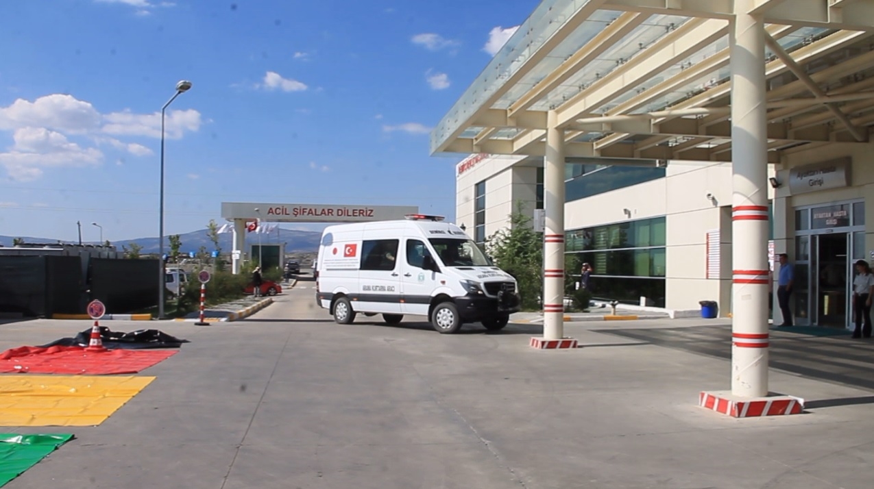 Sağlık personeli gelen yaralıları hastane bahçesinde kurulan seyyar hasta müdahale noktasında doktorlar ile müdahale etti.
