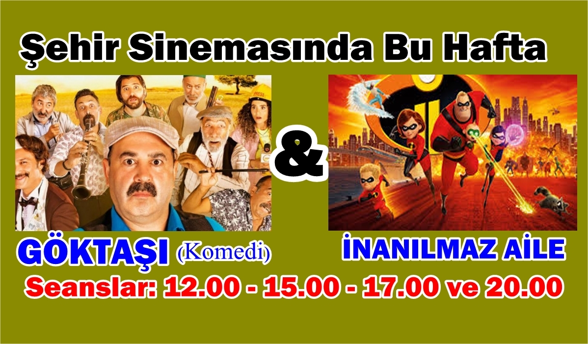 Şafak Sezerin başrollerinde yer aldığı GÖKTAŞI komedi filmi ve Çocuklar için muhteşem bir animasyon filmi olan İNANILMAZ AİLE filmleri sinema severlerin karşısında olacak.