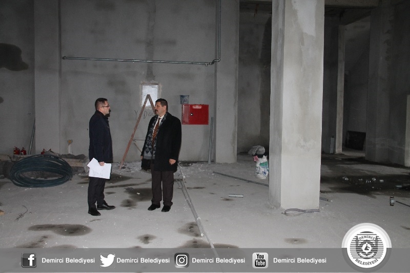 Demirci Belediyesince İlçemiz Cumhuriyet meydanı alanına yapılan Kent Merkezi inşaatı hızla devam ederken, Başkan Selami Selçuk'ta inşaatta incelemelerde bulundu.