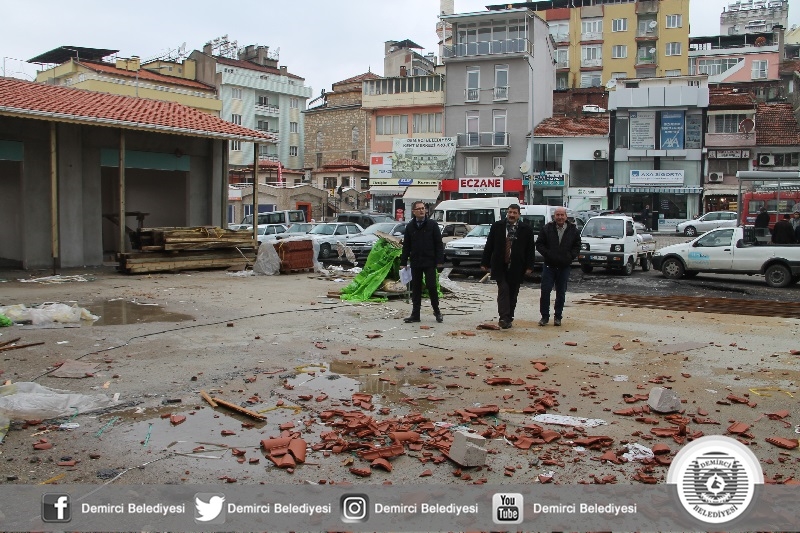 Belediye Başkanı Selami Selçuk " İlçemizin her noktasında hizmetlerimizi sürdürüyoruz. İlçemize değer katacak, ilçemizin markası olacak olan Kent Merkezinde çalışmalar hızla devam ediyor. Demirci'nin gelecek yüzyıllarına hizmet verecek olan Kent Merkezi 4 katlı iş merkezlerinin yer aldığı,önünde geniş meydanlık alan bulunan, en alt katı yaklaşık 1200 metrekarelik kapalı pazar yeri olarak kullanılacak ve binada otopark alanı da yer alacak. Market alanı, çocuklar için geniş bir kapalı oyun alanı, yaşam alanına bakan açık teras ve restoran yer alacak" dedi.