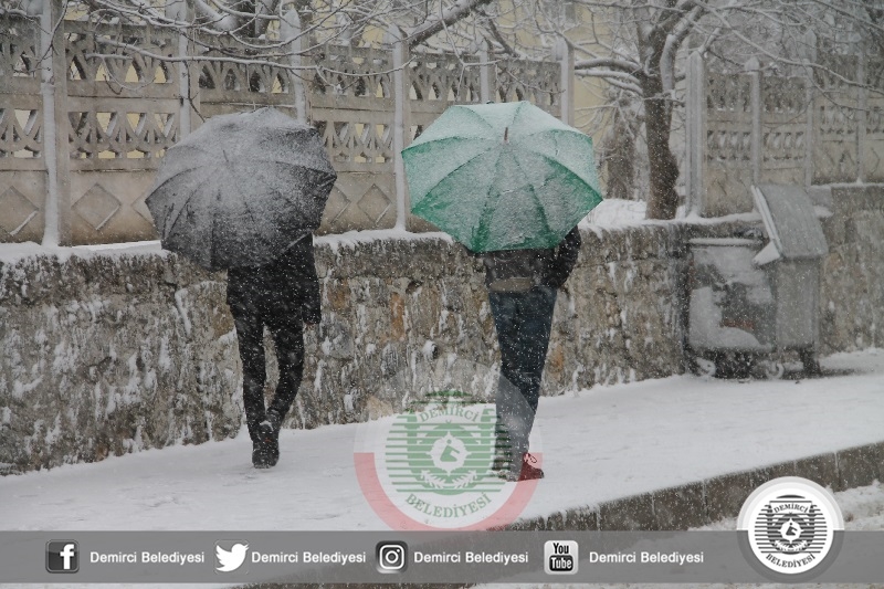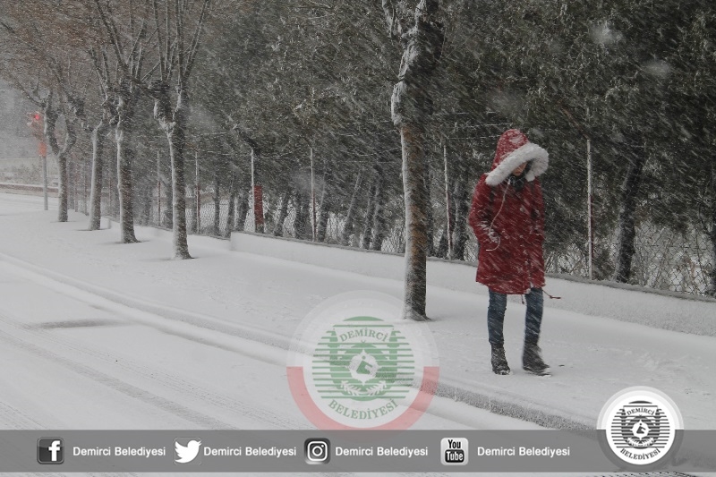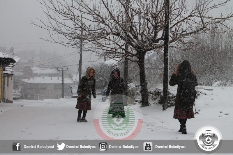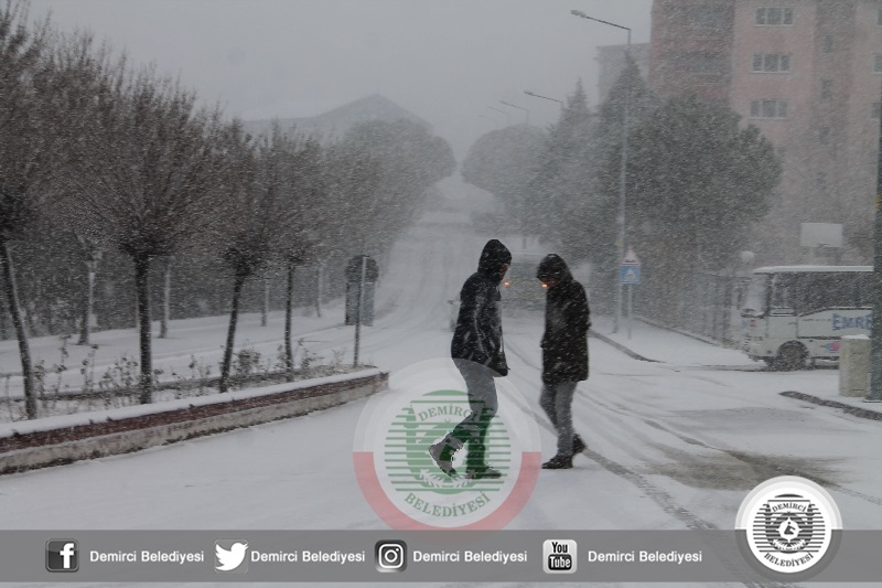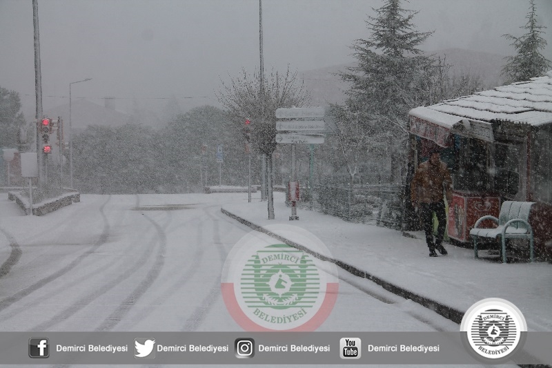 15 Ocak Salı günü Demirci ilçe merkezinde de öğle saatlerinde kar yağışı, fırtına ile tipiye dönüştü.