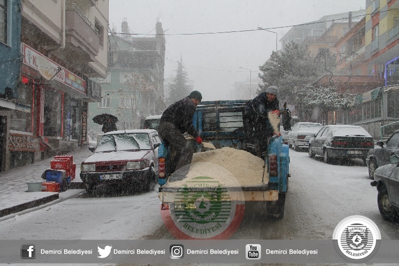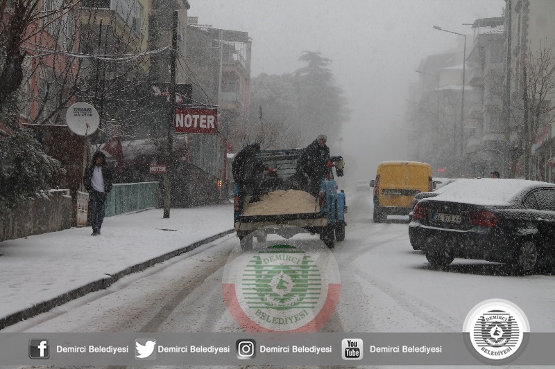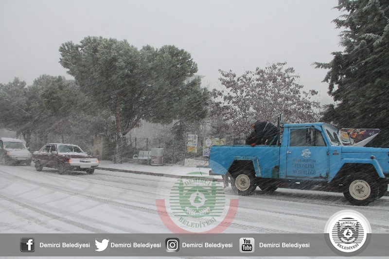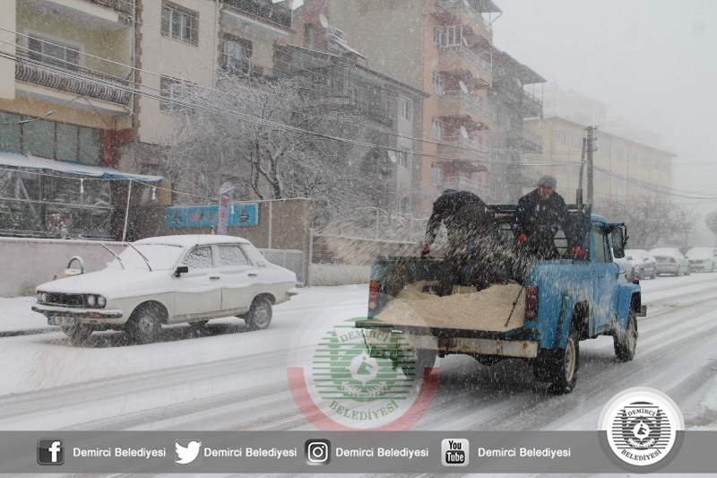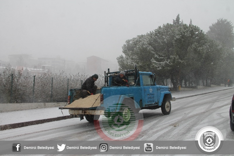 Demirci Belediyesi de kar yağışı ile birlikte yollarda buzlanma yaşanmaması için 3 tuzlama aracı ve 20 personel ile karla mücadeleye devam ediyor.