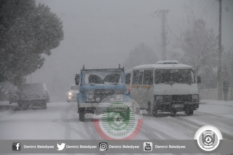 Kar yağışının etkili olduğu Demirci - Simav karayolunu açık tutabilmek için 2 greyder, 1 kar küreme ve tuzlama aracı ile müdahale ederken, Demirci - Simav seferini yapan 15.30 ve 17.00 seferleri iptal edildiği duyuruldu.