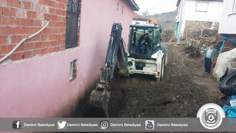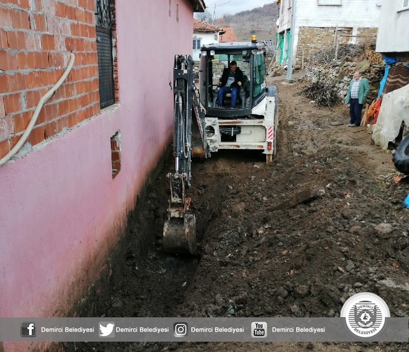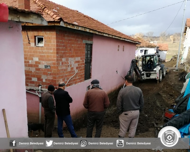 Yağmurlu havalarda yemekhanenin arka kısmından su alması, duvara ve binaya zarar vermesi üzerine Demirci Belediyesi tarafından çalışma başlatıldı.