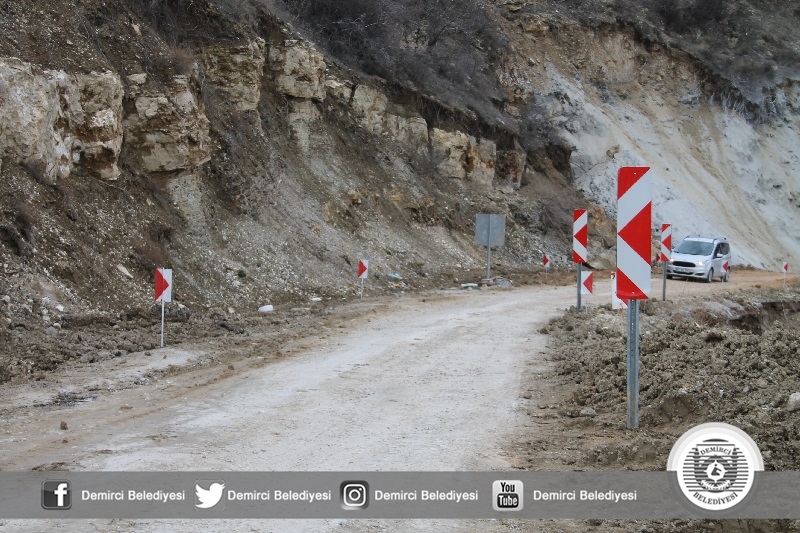 Demirci Belediyesi ve karayolları ekiplerince 3. kilometrede çöken yol yamaçtan kazılarak birleştirildi. Zemin iyileştirilmesinin yapılmasının ardından Demirci Belediyesine ait 8 kamyon ile yaklaşık 50 kamyon stabilize malzeme dökülerek, greyder ile zemin sıkıştırılması ve düzenlemesi yapılarak yol yeniden trafiğe açıldı.