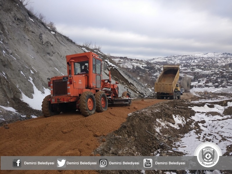 Diğer yandan yapımı devam eden Demirci - Selendi yolunun Ören - Esenyurt arasında 2 kilometrelik bozuk yol Demirci Belediyesine ait kamyonlarla stabilize malzeme serimi yapılarak greyderler ile serilerek yol trafiğe açıldı.
