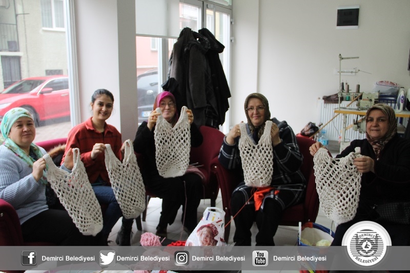 Demirci Belediyesi'de Halk Eğitimi Merkezi Müdürlüğüne file siparişi vererek, Demircili kadınların yer aldığı örgü kursunda fileler örülmeye başlandı.