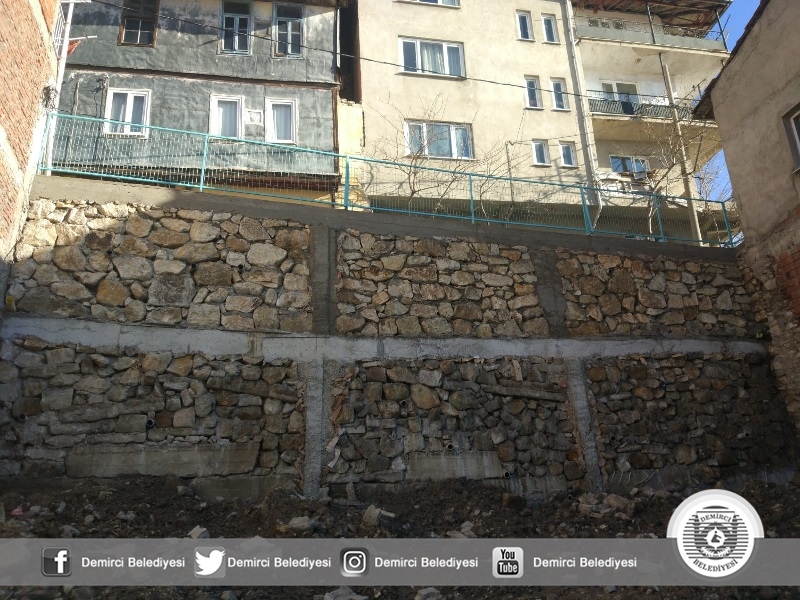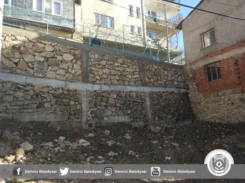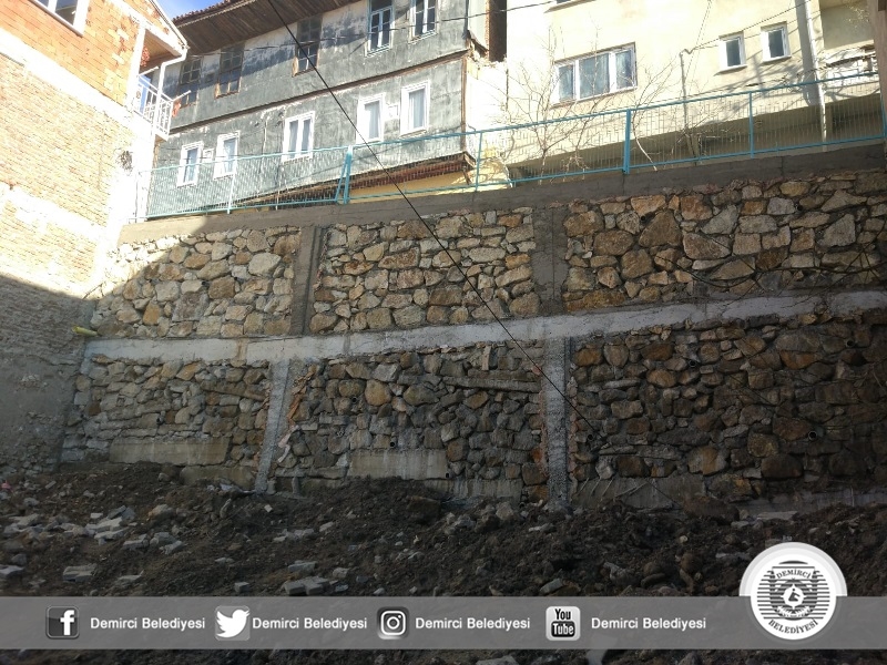 Demirci'de geçtiğimiz günlerde yağışlar sebebiyle çöken istinat duvarı yeniden yapılarak hizmete sunuldu.