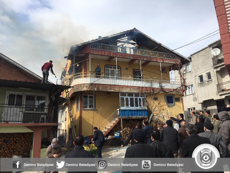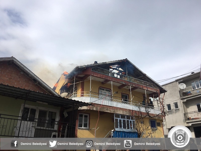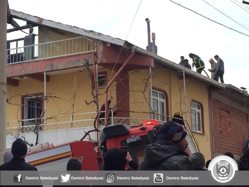 Alınan bilgiye göre Demirci'ye bağlı Mahmutlar mahallesinde Mustafa Darıcı'ya ait 2 katlı evin çatısında bacadan rüzgarında etkisi ile dumanlar çıkmaya başladı.