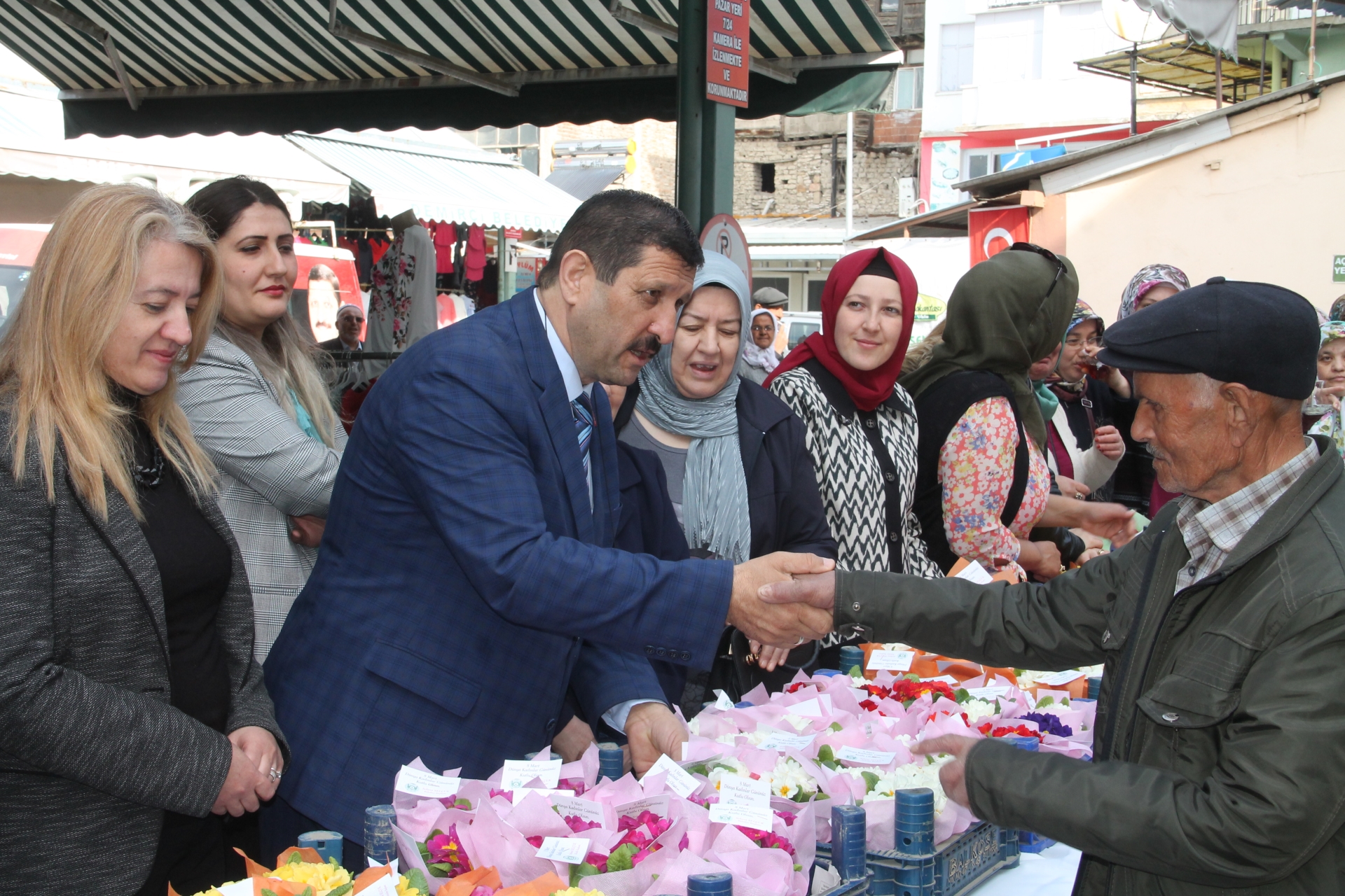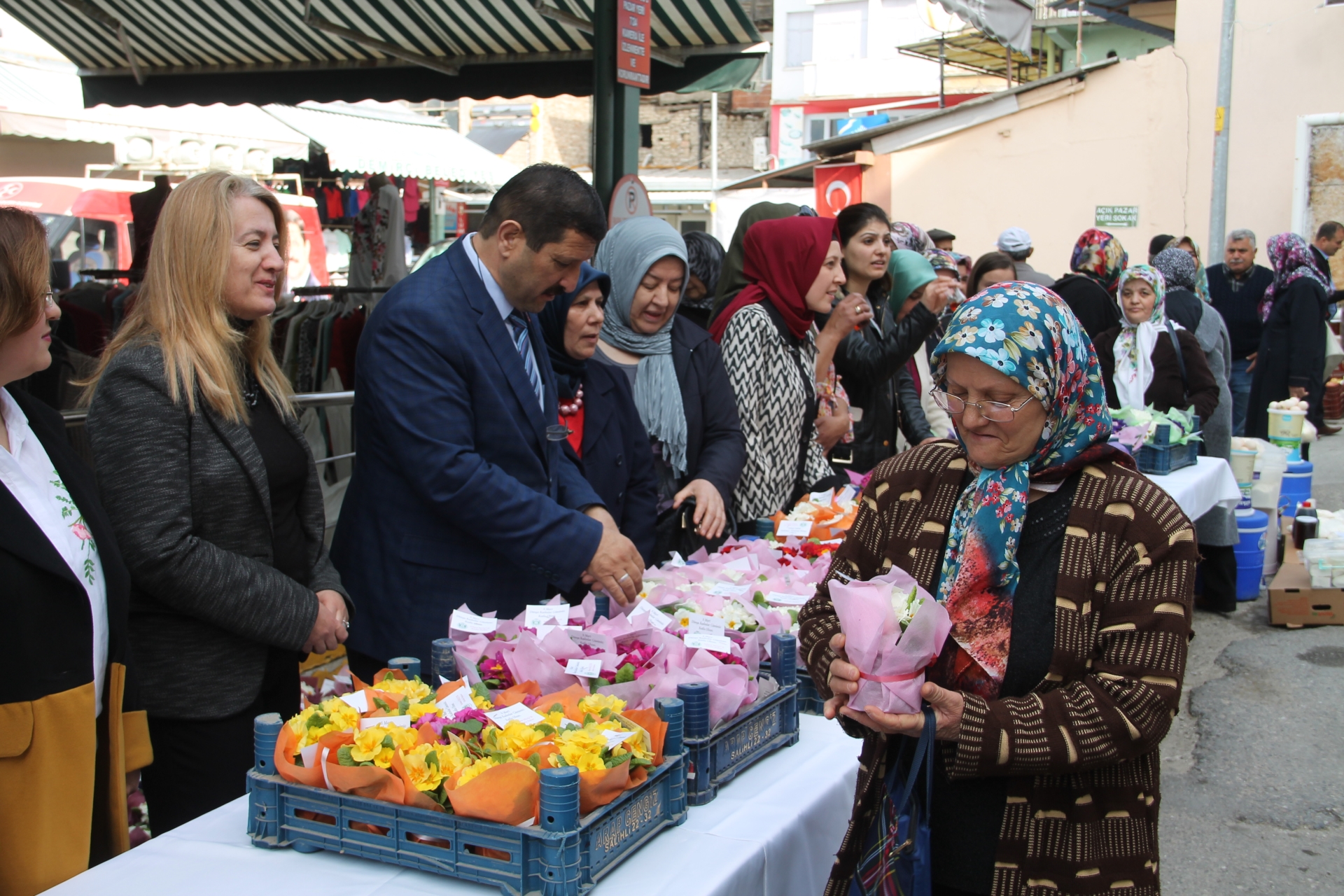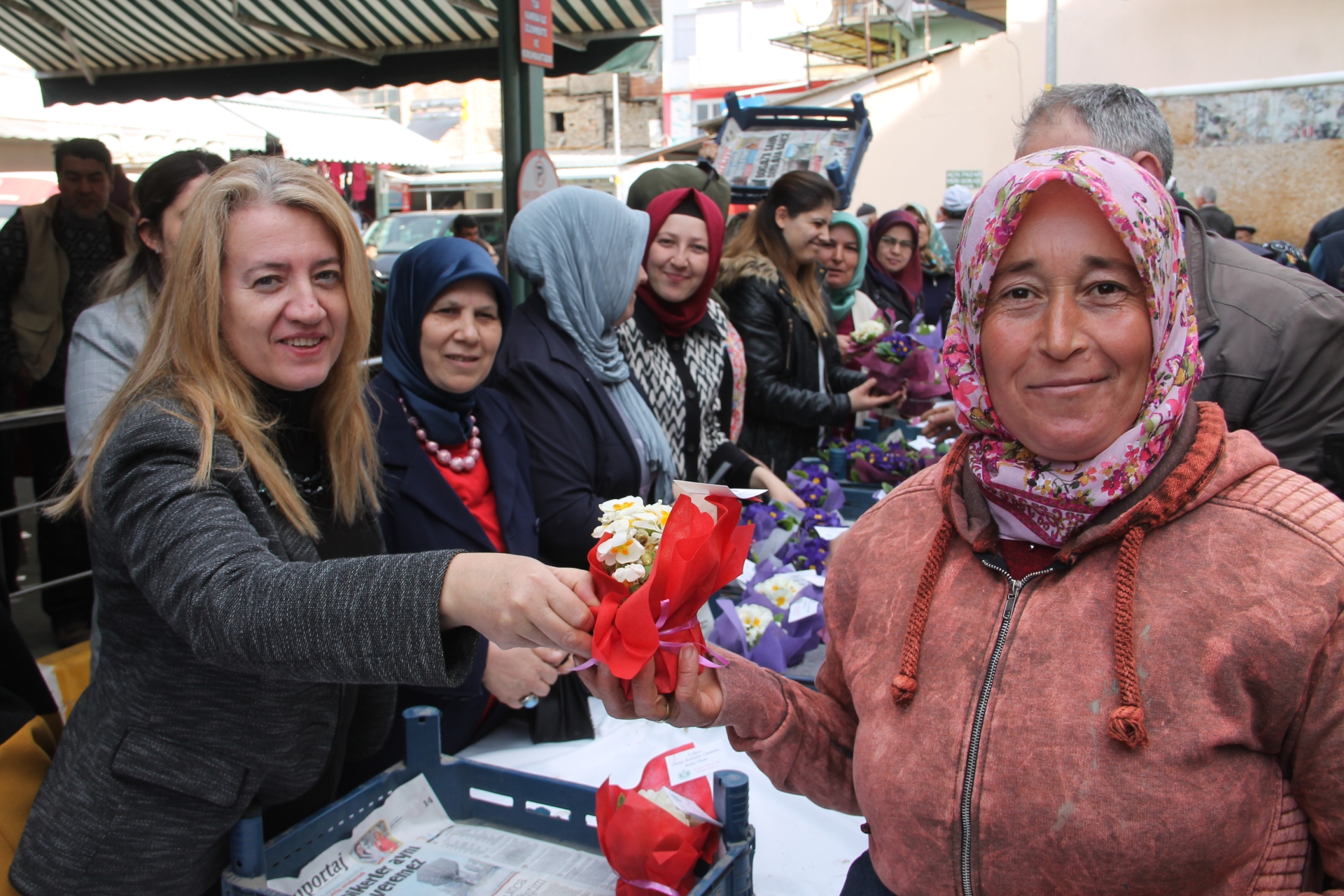09 Mart 2019 Cumartesi günü de İlçemiz pazaryeri girişinde kurulan stanta Demirci kadınlara Dünya Kadınlar günü anısına saksıda çulha çiçeği, yazma ve bez pazar çantaları hediye edildi.