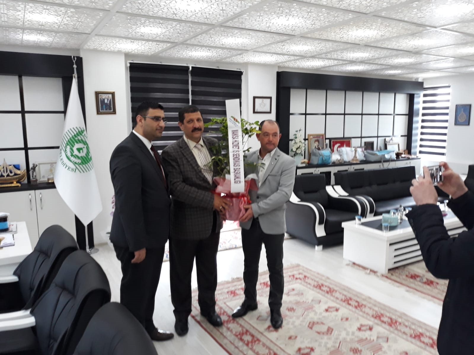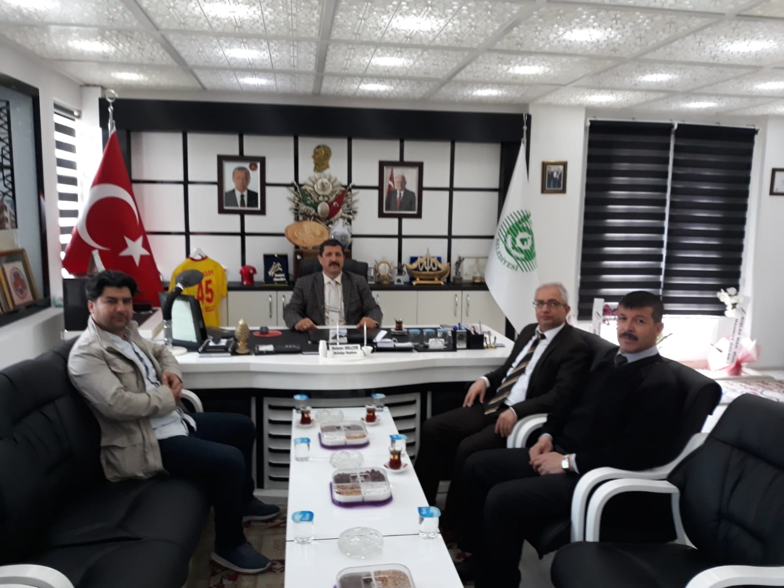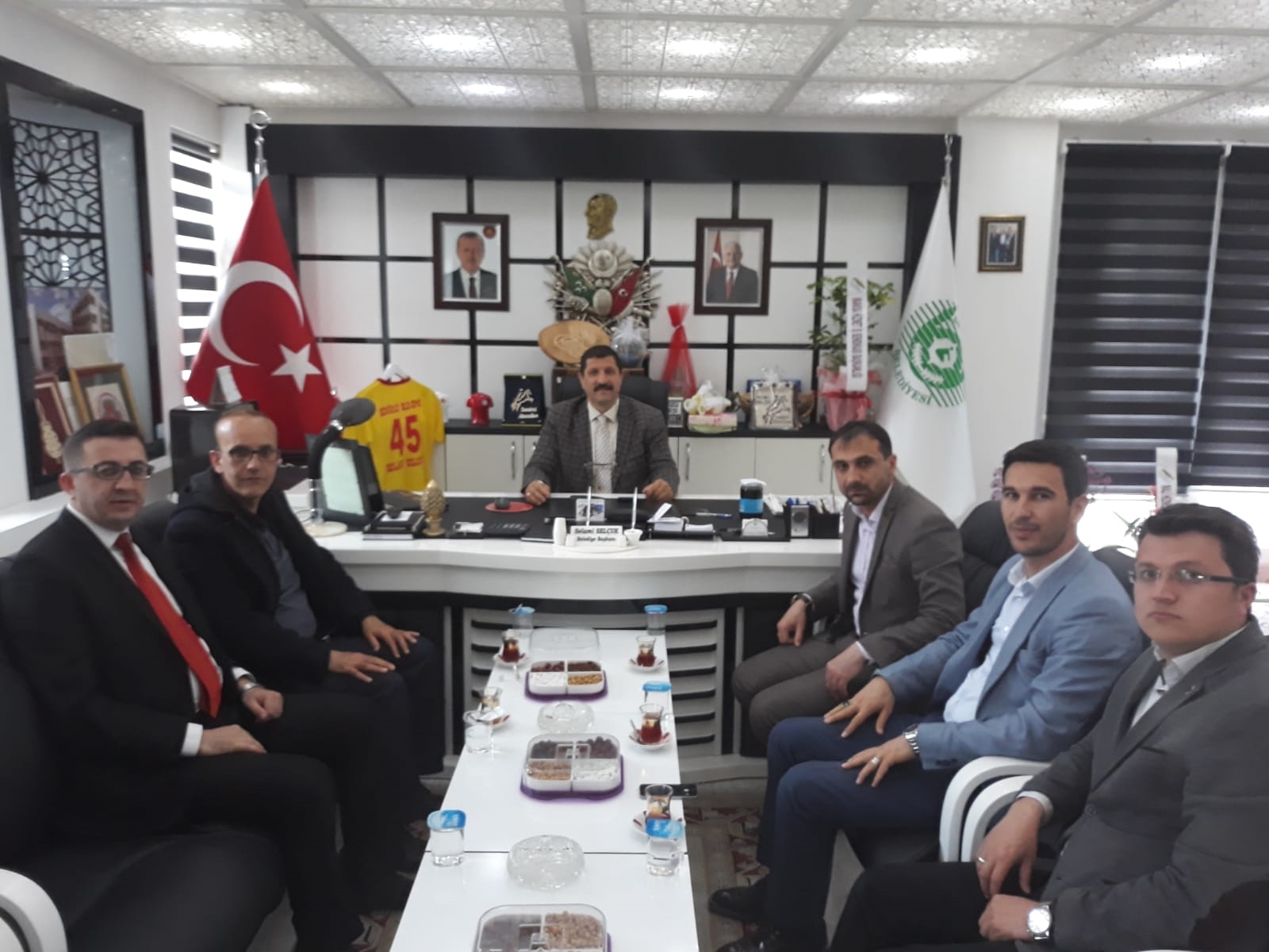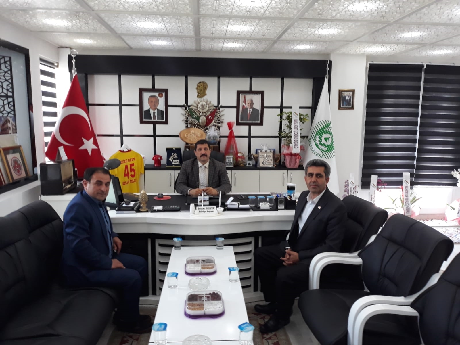 Başkan Selami Selçuk, 2'inci dönem Başkanlık mazbatasını almasının ardından hayırlı olsun temennilerinde bulunmak isteyenleri makamında kabul ediyor.