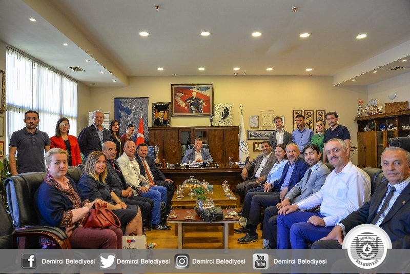 Ziyarete; Kaymakam Mutlu AKYOL, Belediye Başkanı Selami SELÇUK, eşi Güzide SELÇUK, MCBÜ İletişim Fakültesi Dekanı Prof. Dr. Serhat BAŞTAN, Demirci MYO Müdürü Prof. Dr. Fatma ŞAŞMAZ ÖREN, Proje Yürütücüsü Dr. Adnan ERDAL, Proje Danışmanı Prof. Dr. Tuncer TAŞKIN, Proje Koordinatörü Güldeniz KARADAĞ, Proje Araştırma Ekibi, Zafer Kalkınma Ajansı Uzmanları, Demirci Belediyesi Proje Ekibi ve Demirci Ticaret Odası Temsilcisinden oluşan geniş bir heyet katıldı.
