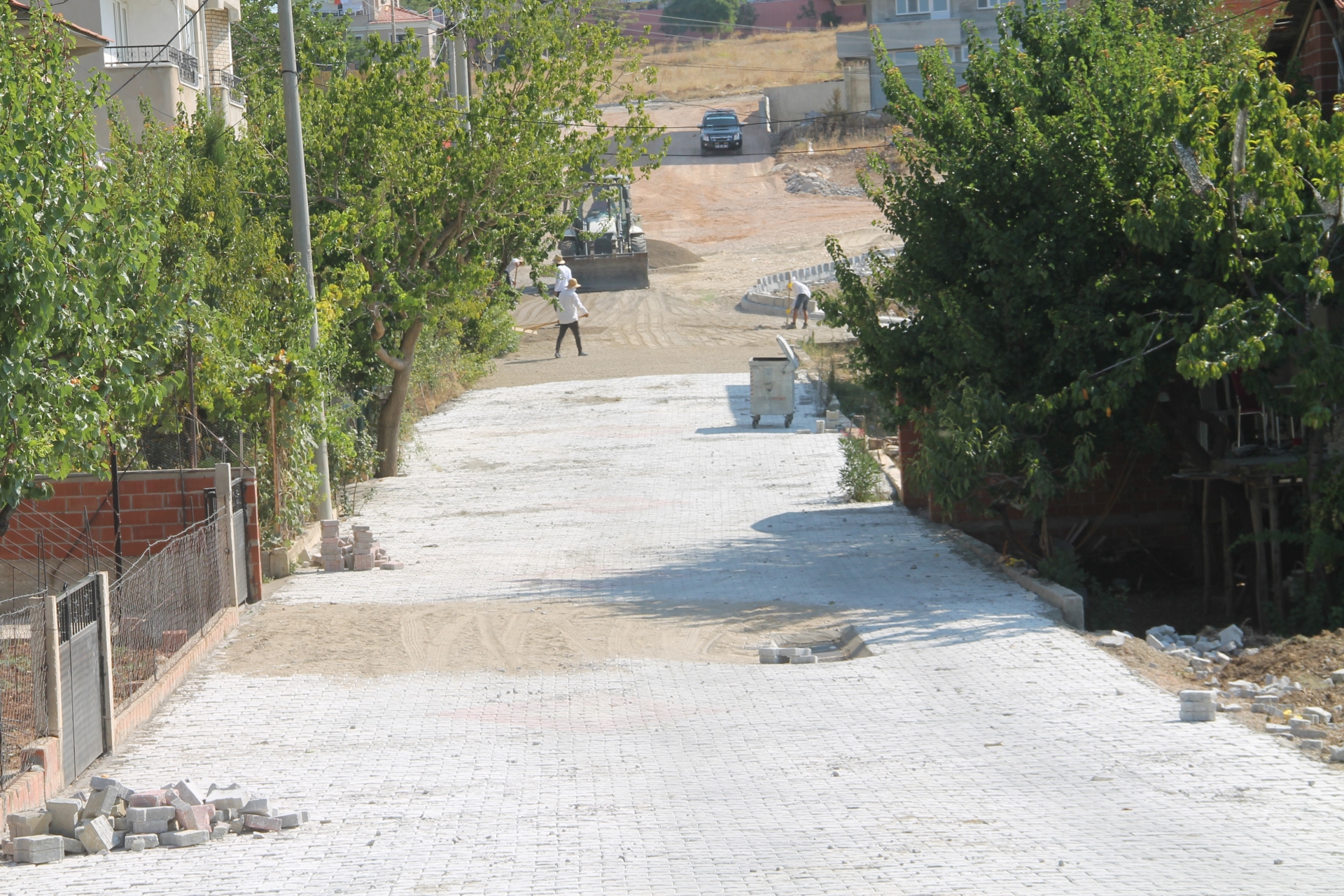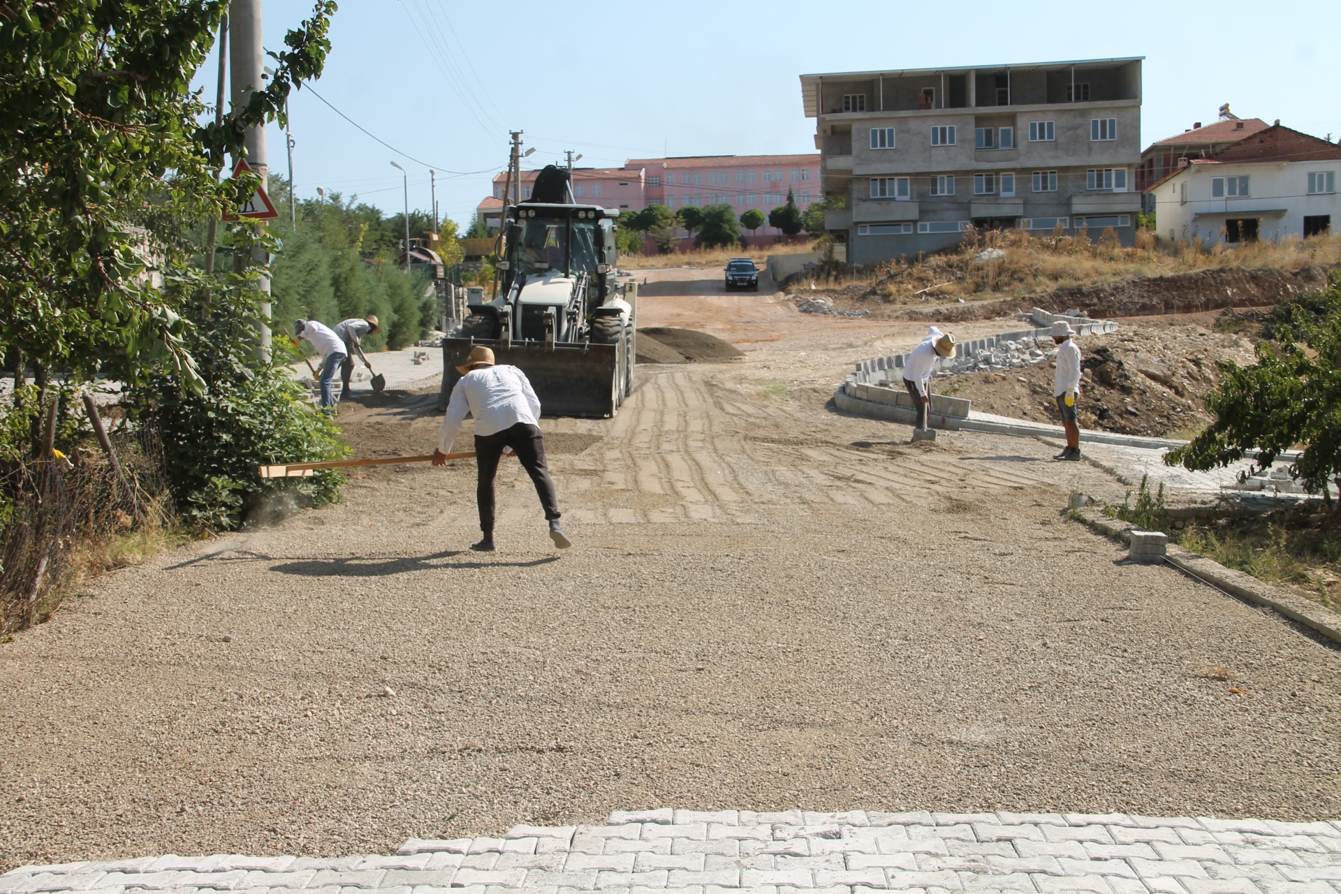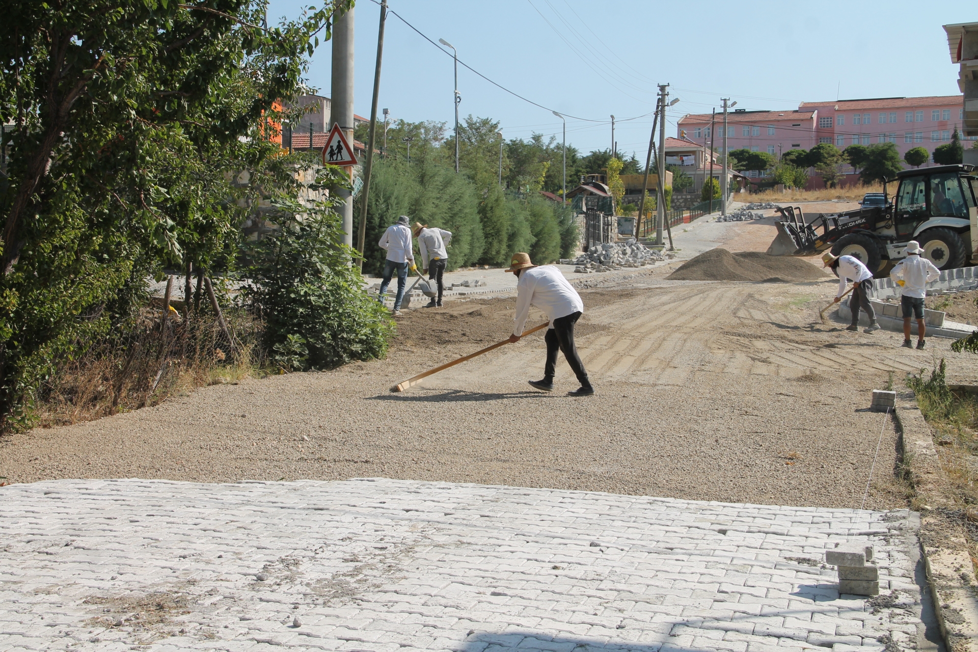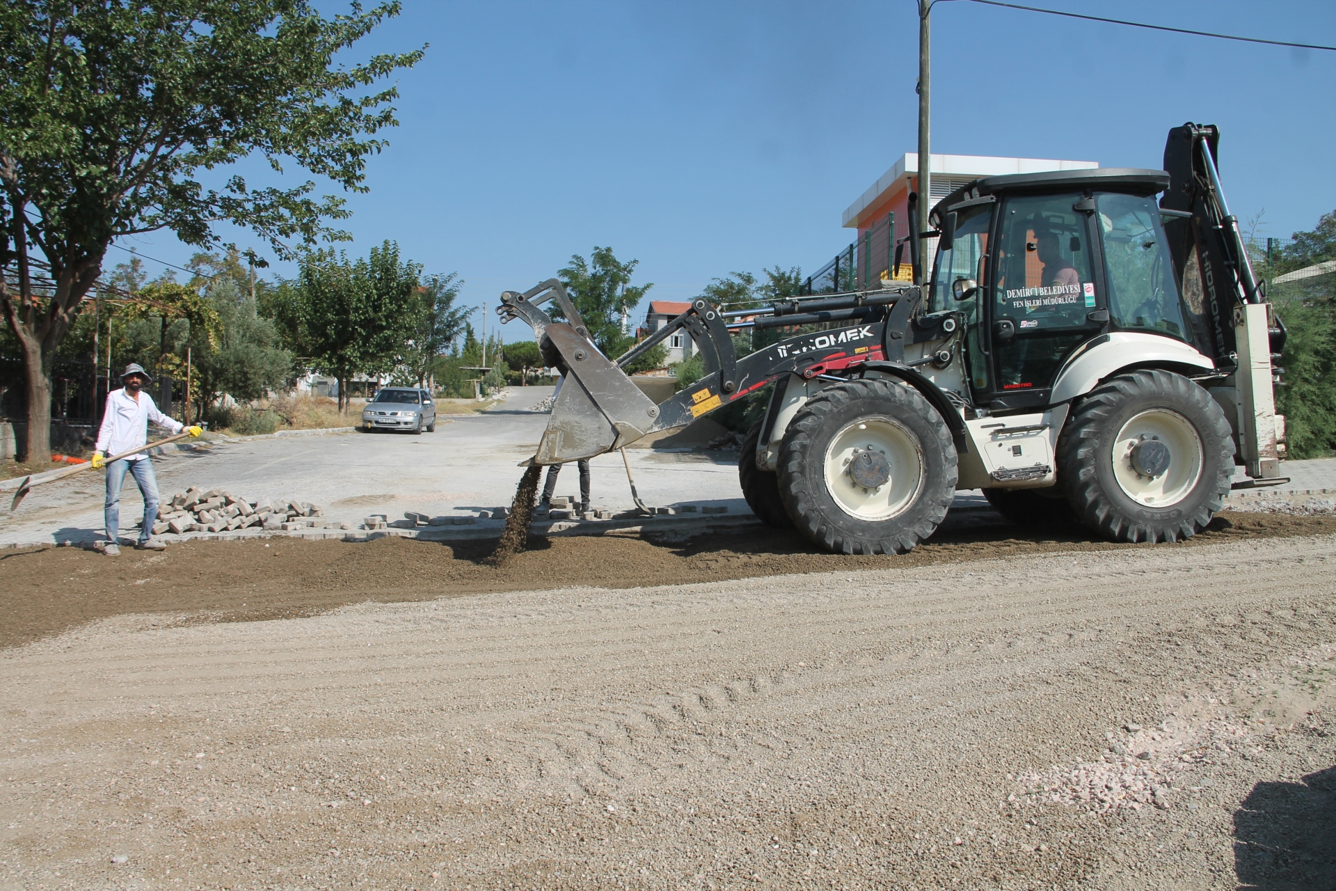 Demirci Belediyesince, Beyazıt mahallesi 1. Hisar Sokak ve Anadolu Kır Düğün salonu çevresinde toprak ve düzensiz olan bölgeler yeniden düzenlenerek parke taşı döşemesi yapılmaya devam ediliyor.