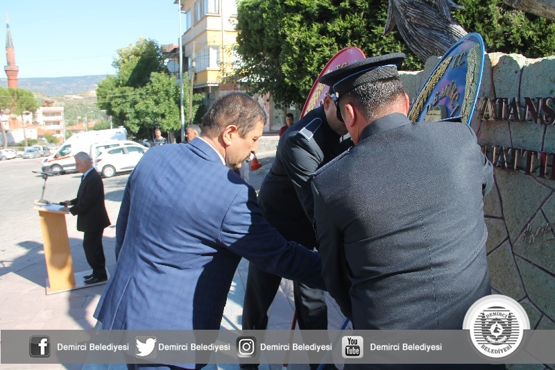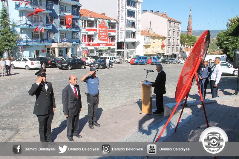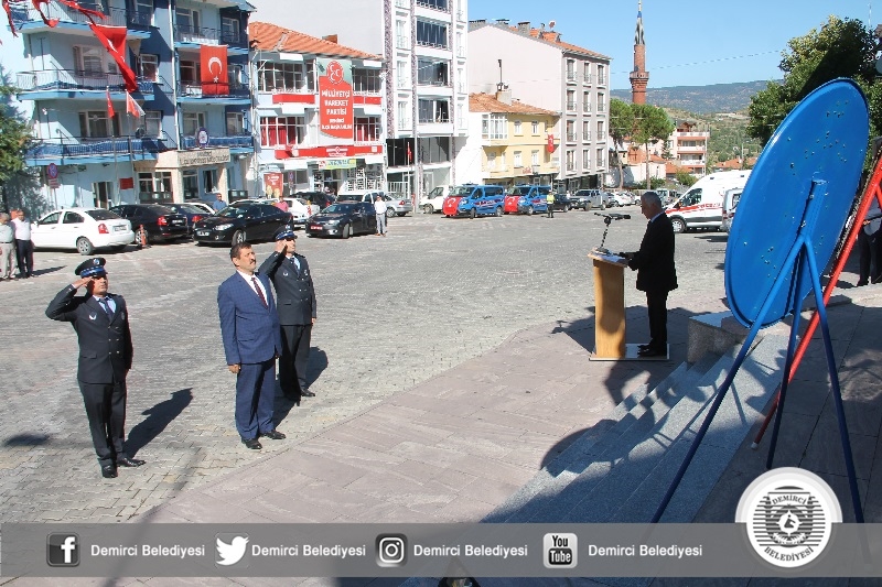 Demirci Belediyesi hizmet binası önünde bulunan Atatürk Anıtı önünde düzenlenen 30 Ağustos Zafer Bayramı törenine Manisa Vali Yardımcısı Abdullah Etil, Belediye Başkanı Selami Selçuk, daire amirleri, gaziler ve ilçe halkı katıldı.