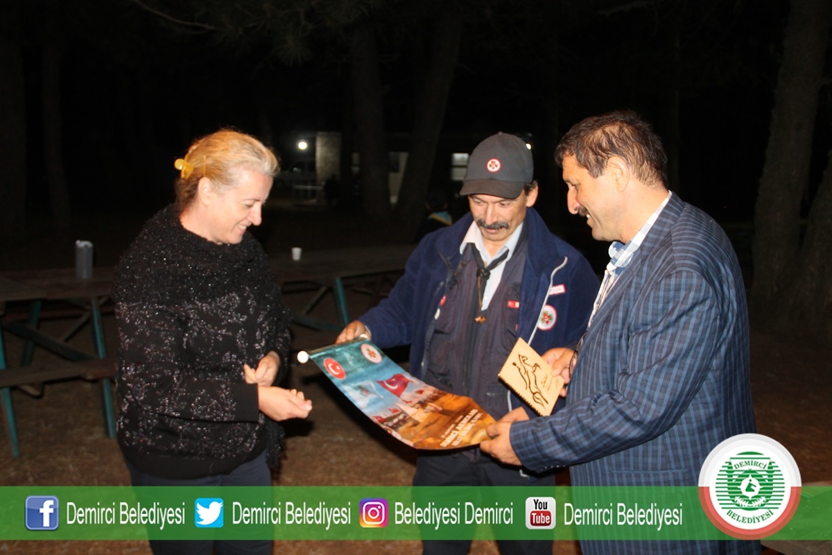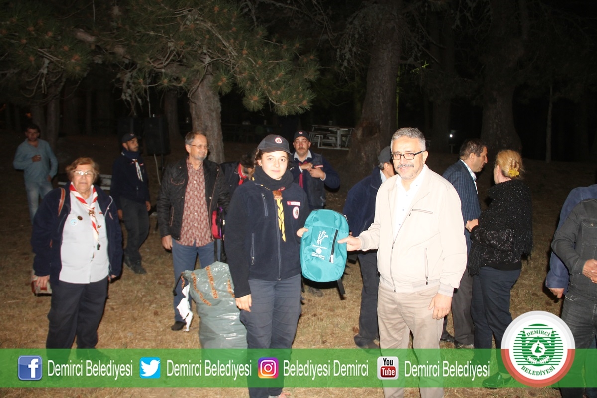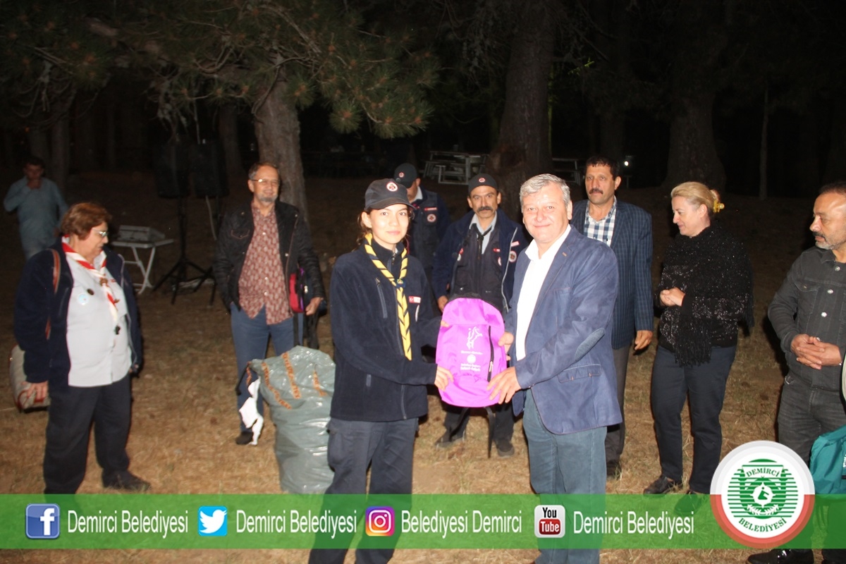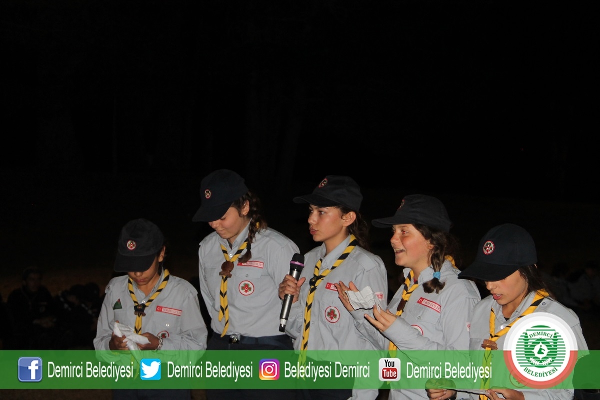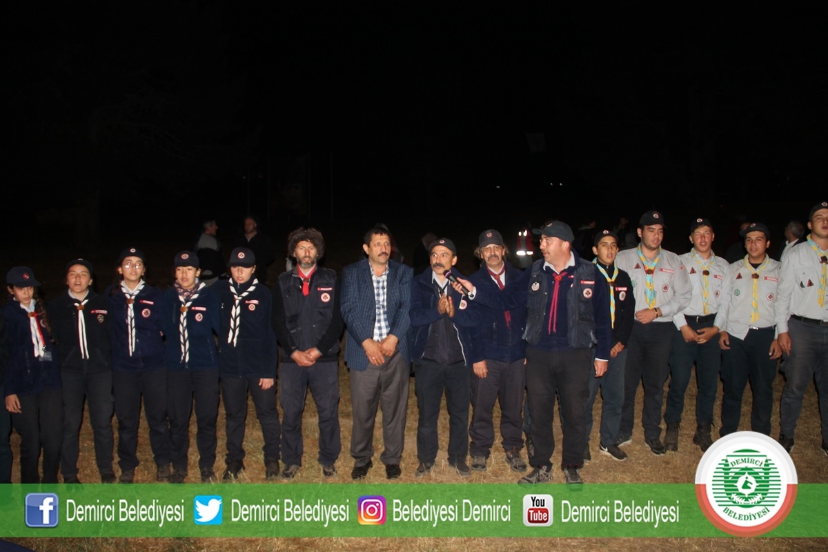 31 Ağustos 2019 Cumartesi akşam saat 20.30'da kamp alanında düzenlenen Demirci Akıncıları Milli Bilinç Kampı kapanış programına Belediye Başkanı Selami Selçuk, eşi Güzide Selçuk, MHP İlçe Başkanı Ümit Kanyılmaz, Belediye Meclis Üyeleri, Aileler ve İzciler katıldı.