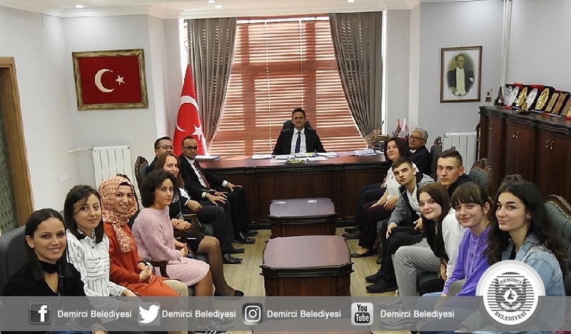 Ukraynalı Öğretmenler ve Öğrenciler ziyaretleri kapsamında Demirci Kaymakamı Adem Kaya ve Belediye Başkanı Selami Selçuk'u makamında ziyaret tanışma fırsatı buldular.