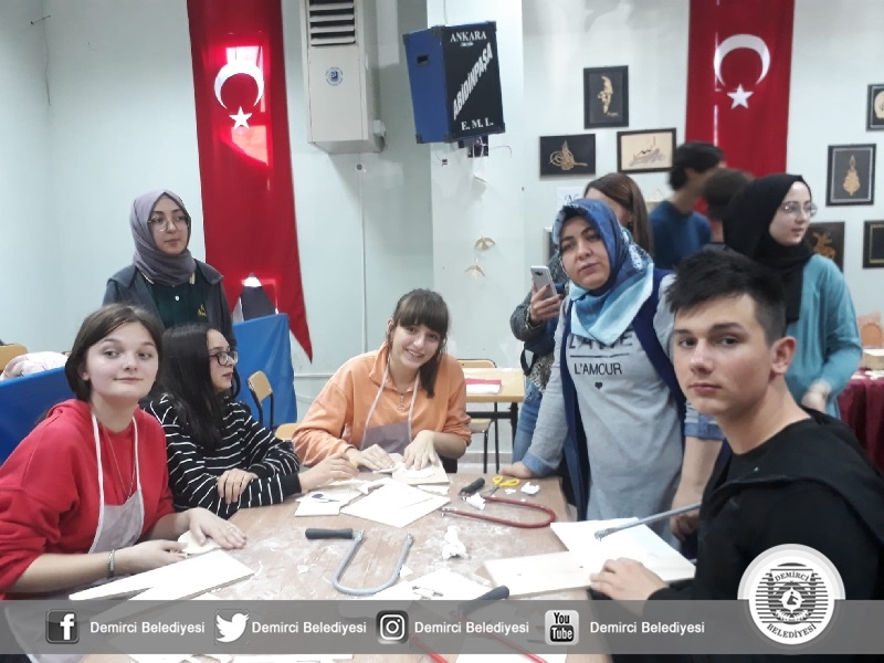 Necip Fazıl Kısakürek Anadolu Lisesi'ne Demirci Belediyesi ulaşım sponsorluğu getirilen Ukraynalı misafirler, Halk Eğitimi Merkezi Müdürlüğünün de destekleri okul bünyesinde Halı Dokuma, Ebru Sanatı gibi çok çeşitli dallarda yapılan çalışmaları yerinde görürlerken, yapma imkanı da buldular.