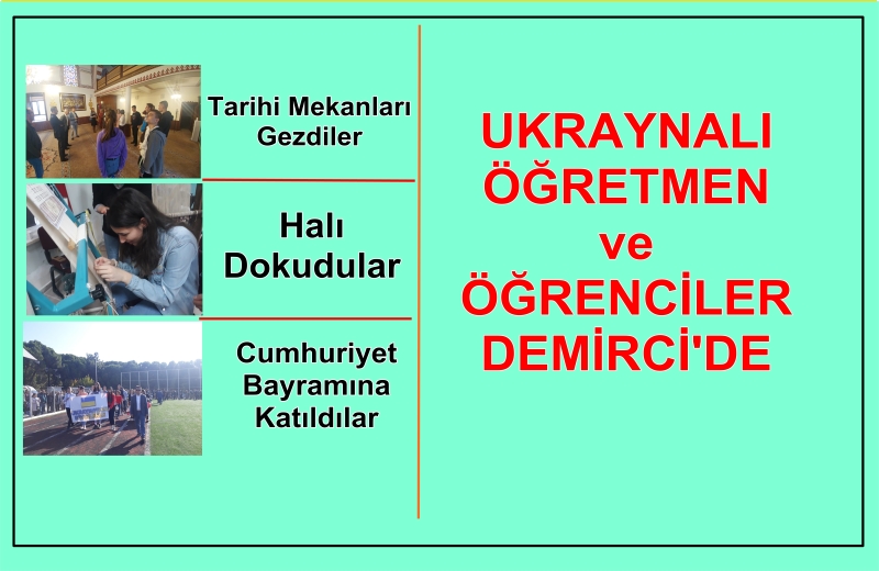 Necip Fazıl Kısakürek Anadolu Lisesi tarafından hazırlanan kardeş okul projesi kapsamında 28 Ekim Pazartesi günü Demirci'ye gelen Ukraynalı öğrenciler, İlçede 5 gün boyunca tarihi mekanları gezerlerken, Türk kültürünü ve çalışmalarını yerinde izleme imkanı buldular.