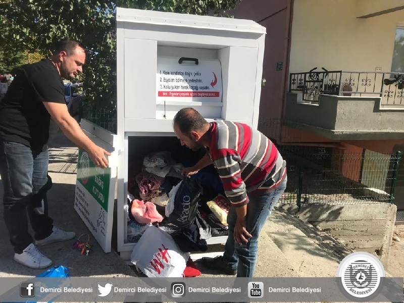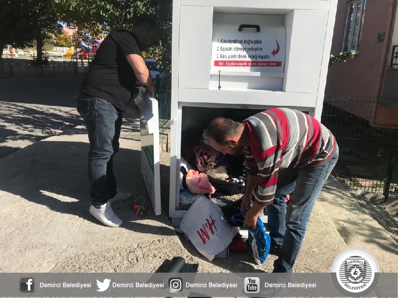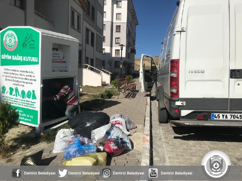 Demirci Belediyesi, evlerde kullanılmayan giyim eşyalarının ihtiyaç sahiplerine ulaştırılması amacıyla hazırlanan 10 adet giyim bağış kutusuna, İlçe halkı ve kırsal mahallelerdeki vatandaşlar tarafından büyük takdirle karşılanırken, yetkililer tarafından kutulara bırakılan eşyalarda alınmaya başlandı.