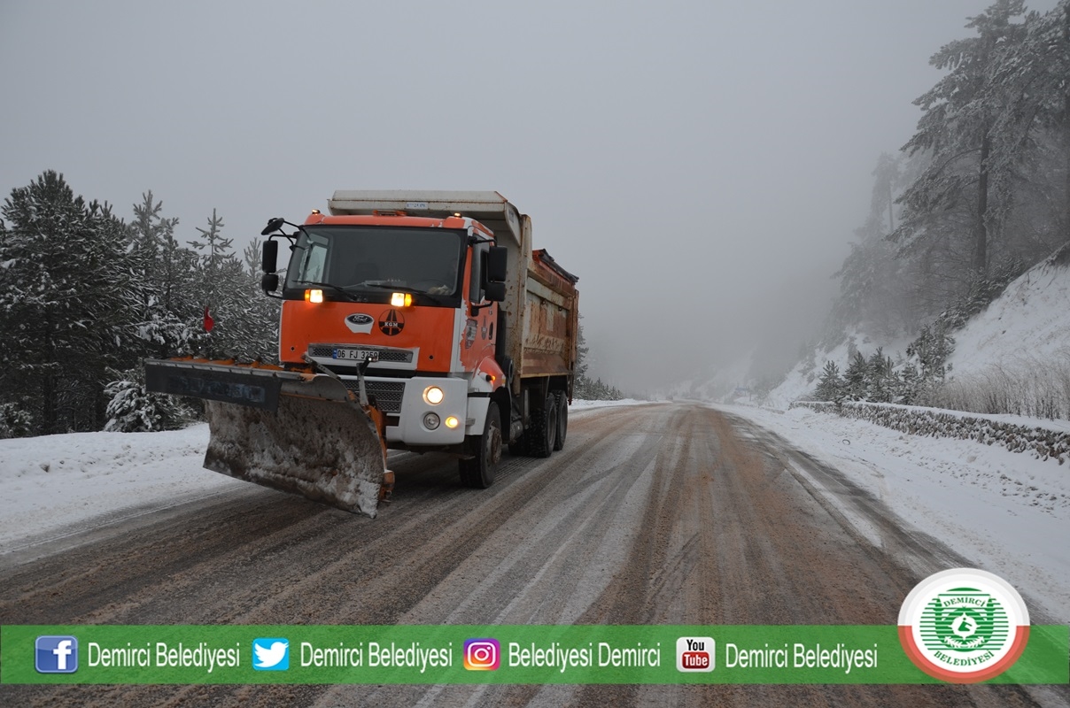 Yılbaşı tatilinde kar yağışında yolları açık tutabilmek için Demirci ve Simav karayolları ekipleri gün boyu kar temizleme ve tuzlama çalışması yaptılar.