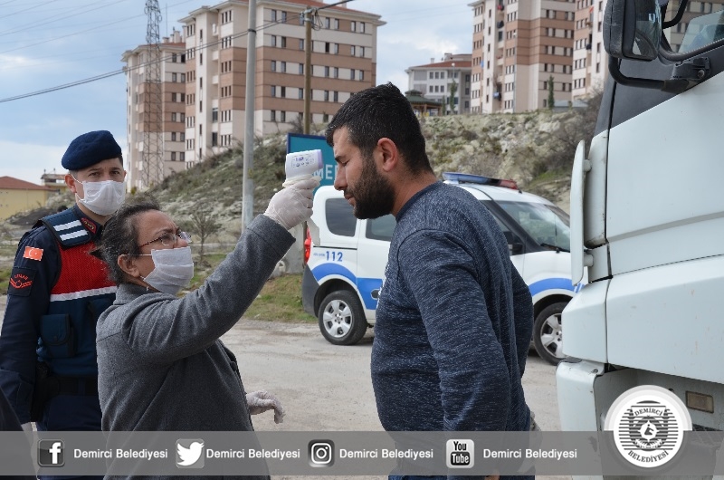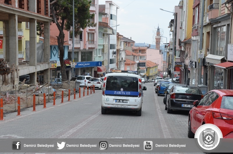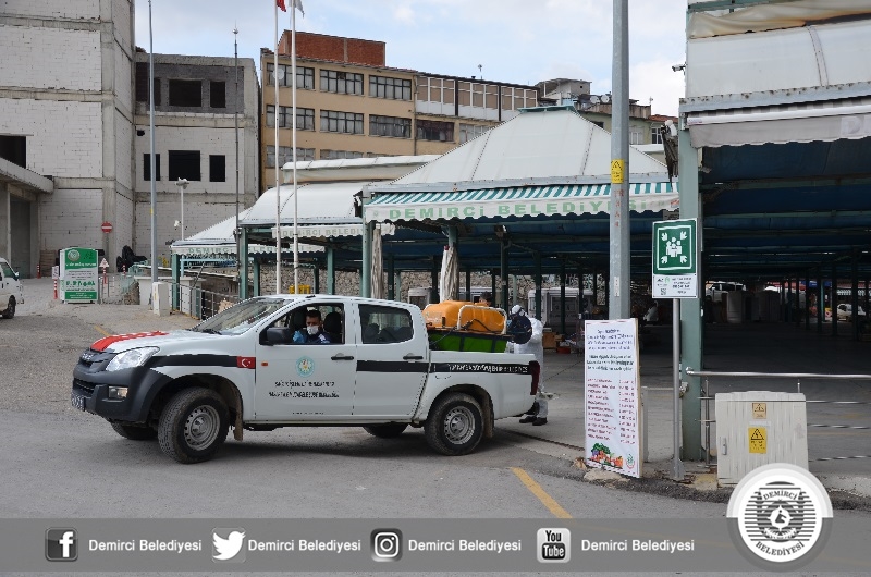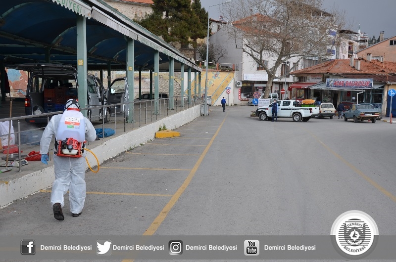 Ayrıca Demirci Belediyesince ilçe Hıfzıssıhha kurallarının uygulanması için sahada çalışmalarını yürütüyor.