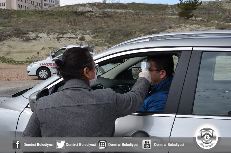 Simav - Demirci karayolu girişinde İlçe Emniyet Müdürlüğü, İlçe Jandarma Komutanlığı ve İlçe Sağlık Müdürlüğü ekipleri şehre giriş kontrolleri 7/24 esasına göre yapılıyor.