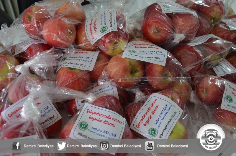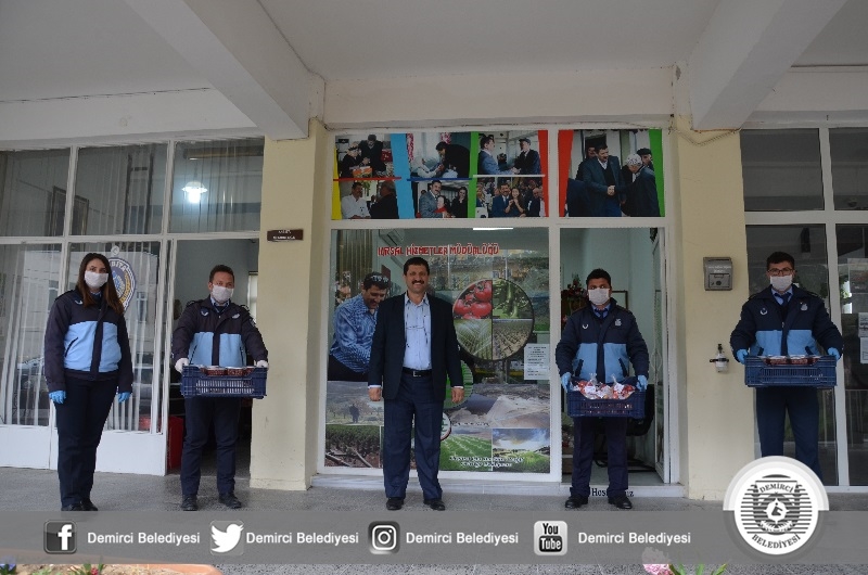 Belediye Başkanı Selami Selçuk yaptığı açıklamada " İnsanlığın korona virüs ile yaptığı amansız mücadelede Demirci cephesinde ön safta mücadele eden sağlık çalışanlarımıza bağışıklığını güçlendirmek, hem de onlara teşekkür edebilmek için şifalı hünnap meyvemizden ayrıca organik elmadan hazırlayarak dağıttık. Tüm sağlık çalışanlarımıza teşekkür ediyoruz emekleri için " dedi.