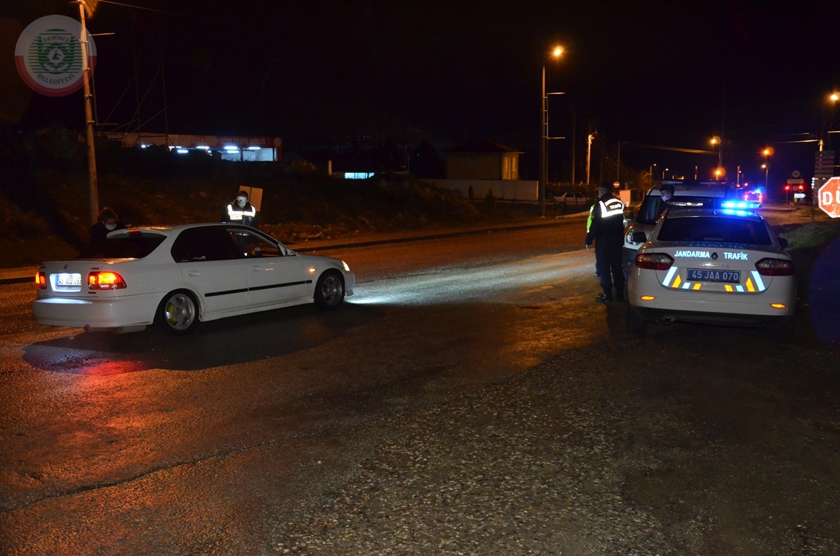 Demirci - Simav karayolu Demirci girişinde ilçeye girişlerde kontrol yapan emniyet ve jandarma görevlerinin yanı sıra sağlık görevlileri tarafından da sürücülerin ve yolcuların ateşleri ölçülerek ilçeye alınıyor.