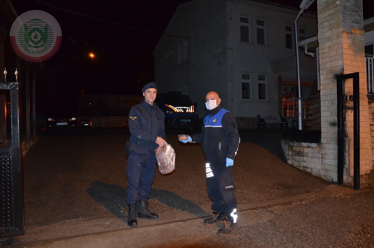 Demirci ilçesinde korona virüs (Kovid-19) tedbirleri çerçevesinde ilçe girişinde uygulama yapan görevleri ziyaret eden Belediye Başkanı Selami Selçuk, hünnap, baklava ve elma ikramında bulundu.