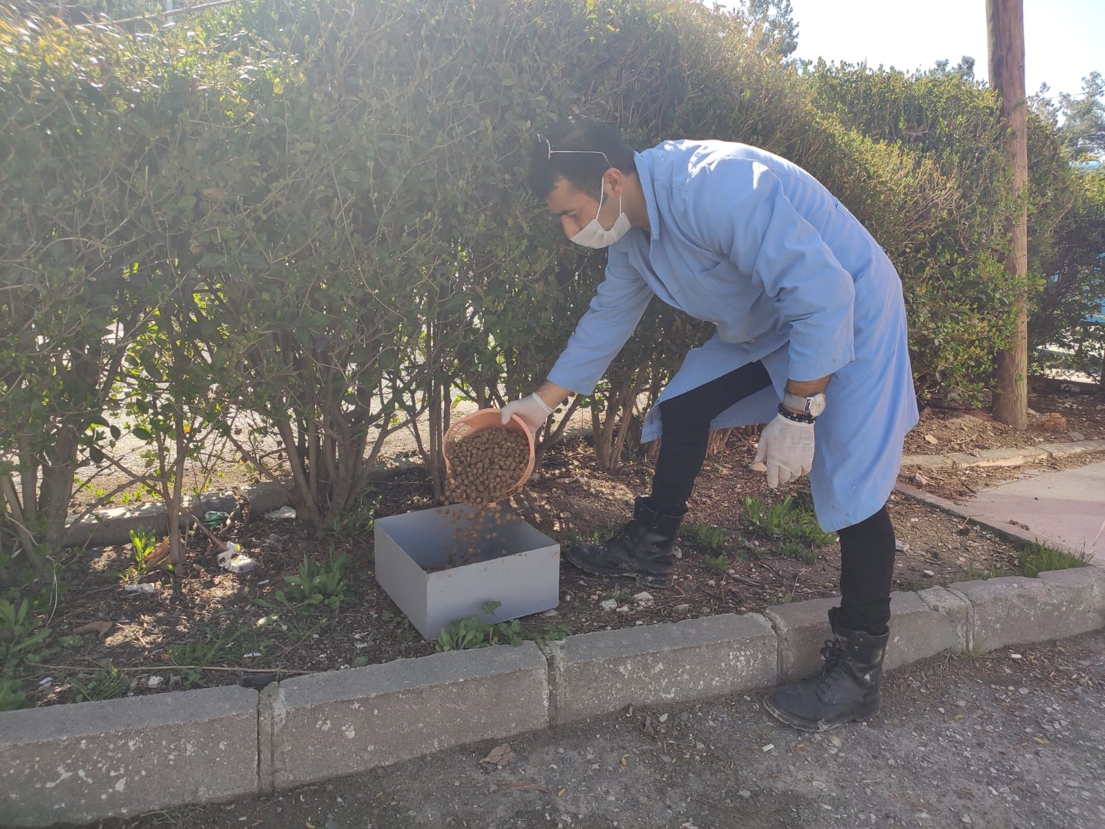 Yeni tip koronavirüs salgını nedeniyle yiyecek bulmakta zorlanan sokak hayvanları için gönderilen genelge Demirci Belediyesi ilçe genelinde belirlediği noktalara sokak hayvanlarının yiyebilmeci amacıyla yem bıraktı.