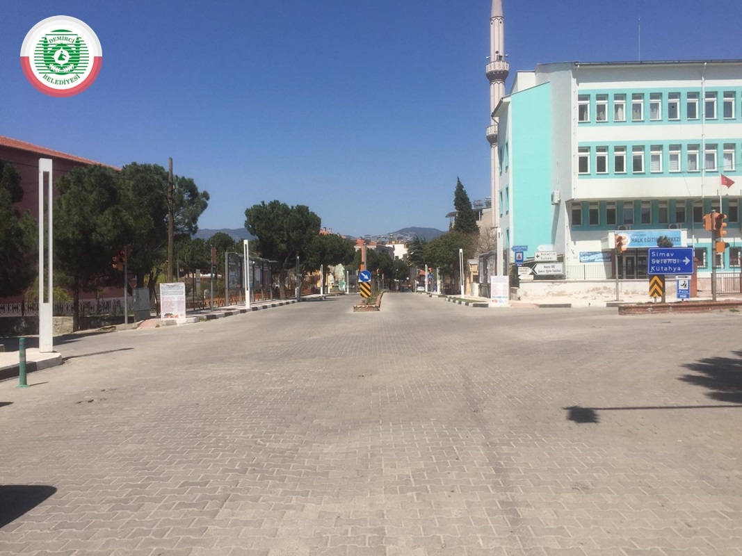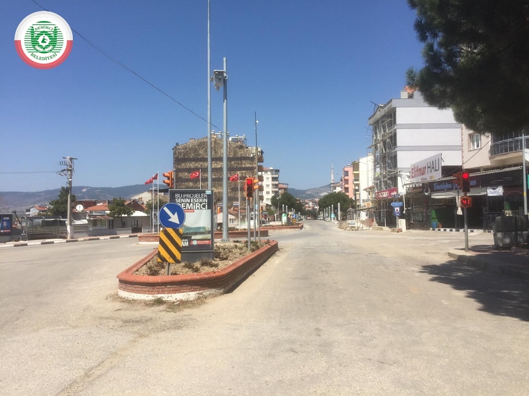 Demirci'de de 2 gün uygulanacak olan sokağa çıkma yasağında ilçe merkezi cadde ve sokakların boş olduğu vatandaşların yasağa riayet ettiği görüldü.