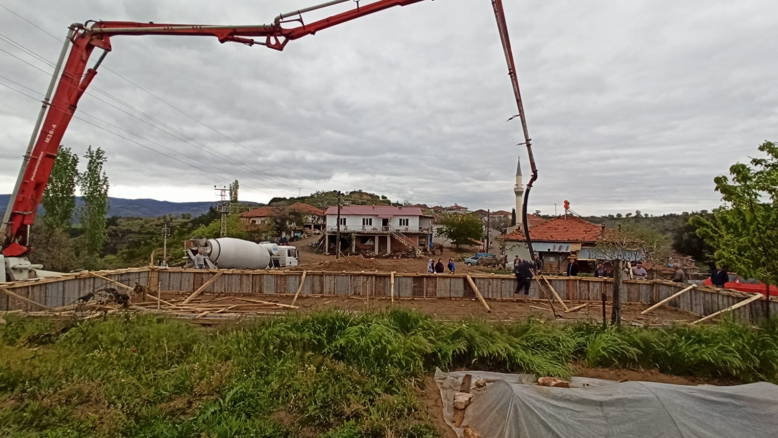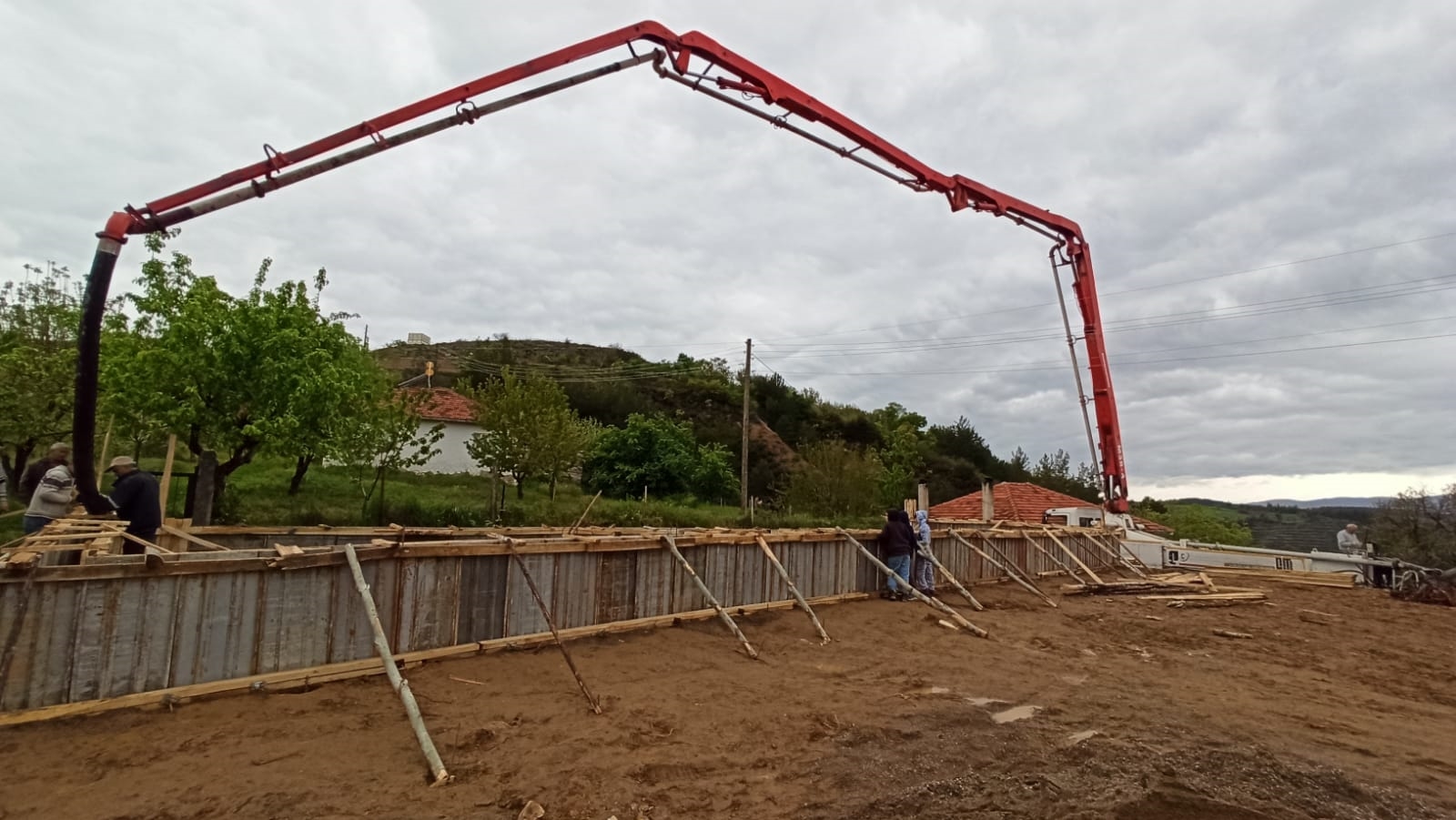 150 metrekare büyüklüğünde yapılacak olan kiraz alım yerine 80 santimetre yükseltme yapılarak perde betonu atıldı. Dolgu ve tesviye betonunun atılmasının ardından çevre duvarı ile direk ve çatı montajına geçilecek.