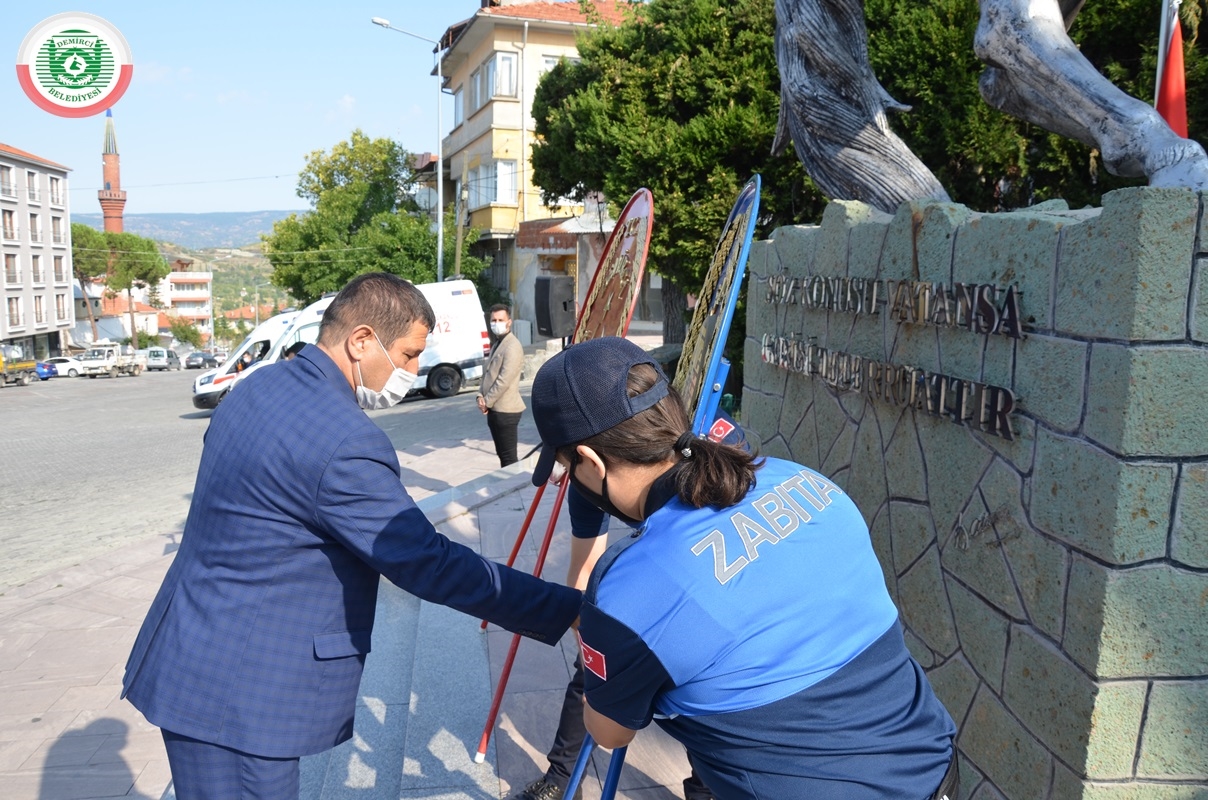 Kaymakamlık makamı, Belediye Başkanlığı ve Muharip Gaziler derneği tarafından Atatürk anıtına çelenk sunumu yapıldı.