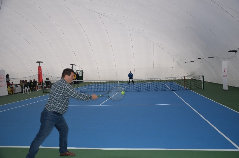 Tenis turnuvasına Kaymakam Adem Kaya, ilçe kurum müdürleri, doktorlar, sağlık çalışanları, eczacılar, öğretmenler ve öğrenciler katıldı.