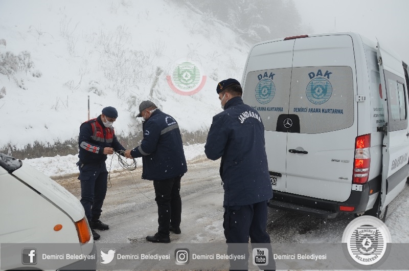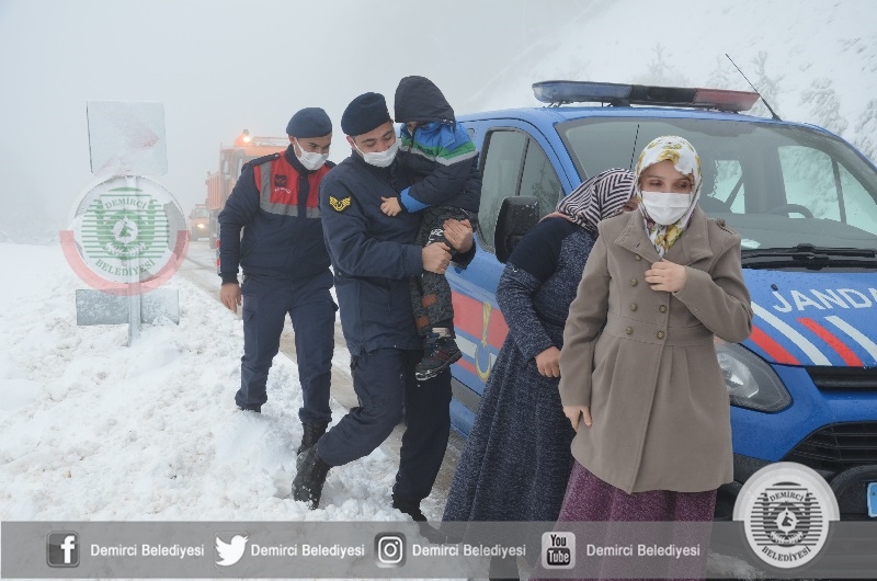 Demirci - Simav karayolunda yolda mahsur kalan aile jandarma ve demirci belediyesi arama kurtarma ekiplerince kurtarıldı.