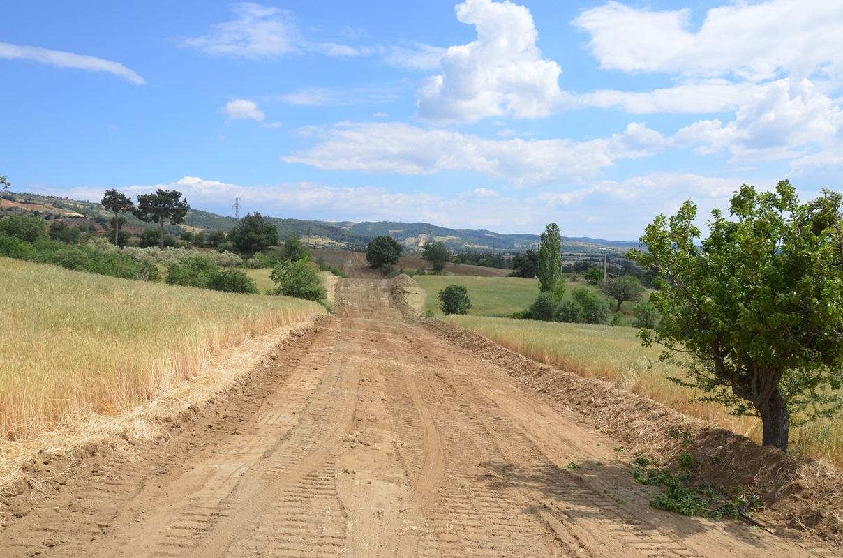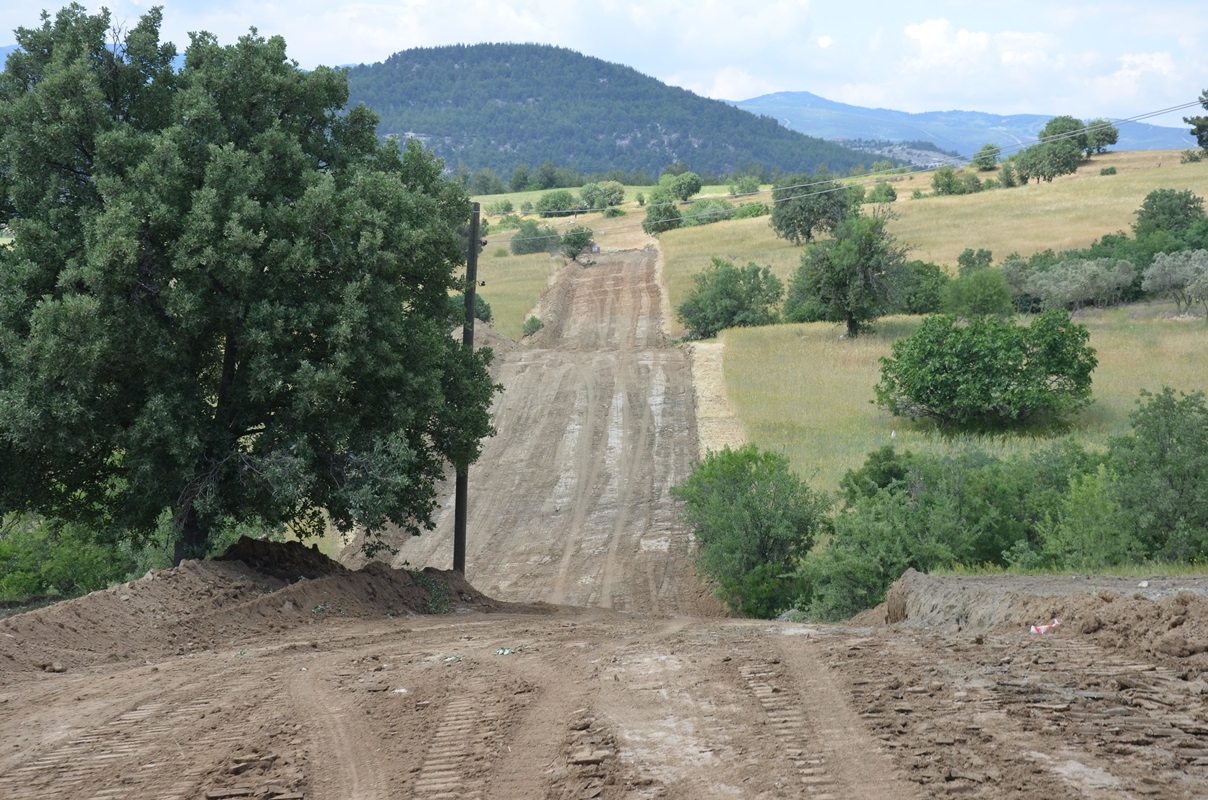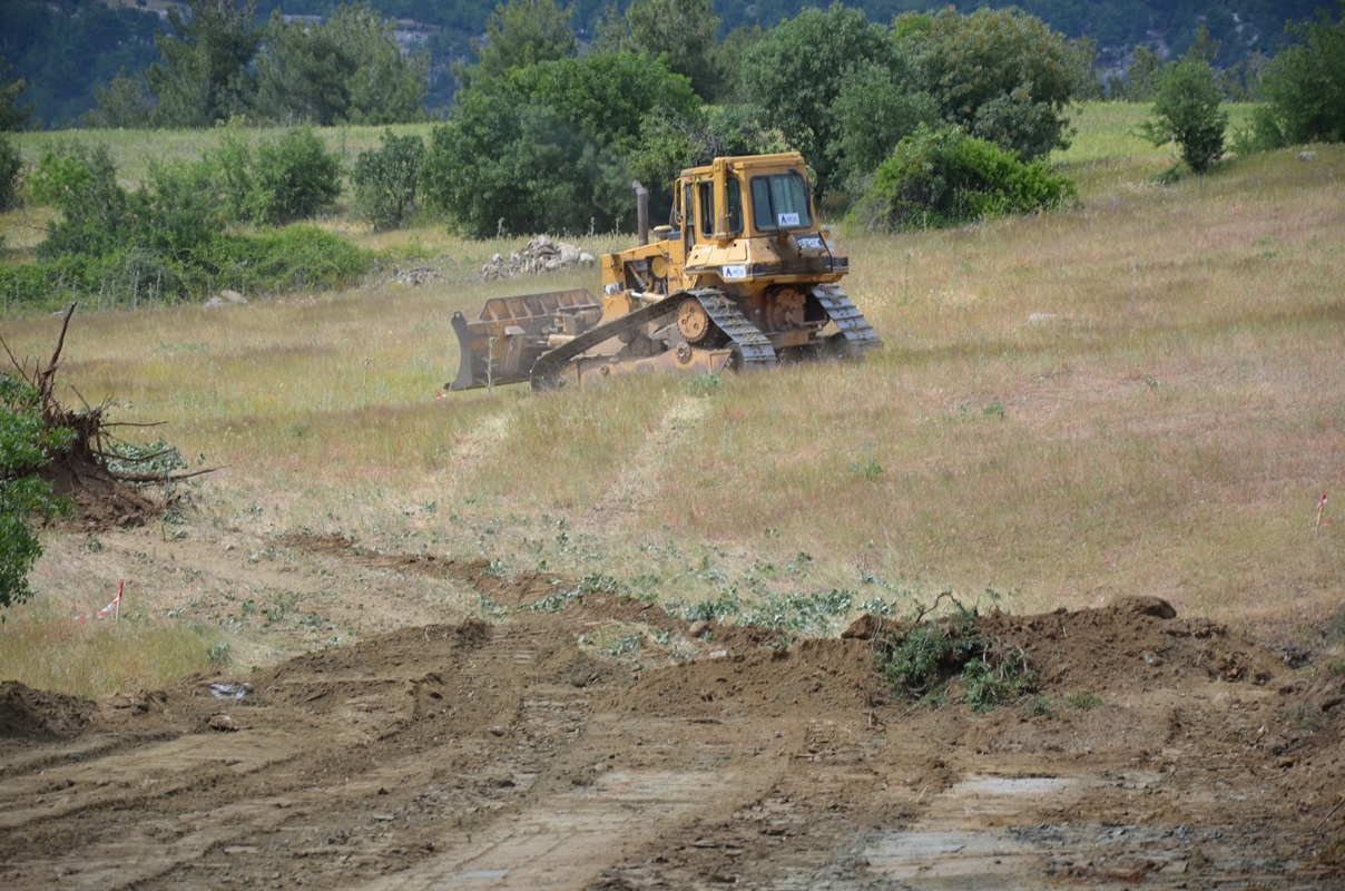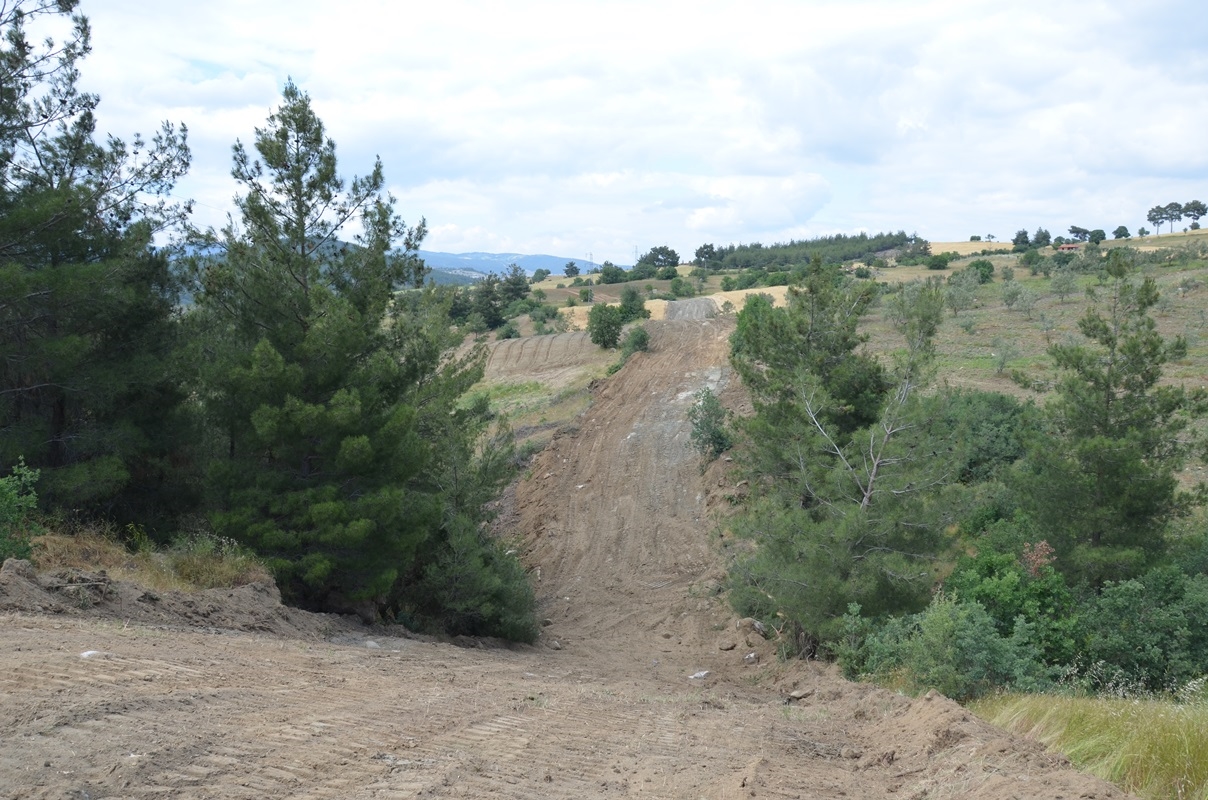 43 kilometrelik hat üzerinden Demirci'ye ulaşacak doğalgaz boruları için yüklenici firma güzergah üzerinde düzenleme çalışmalarını sürdürüyor.
