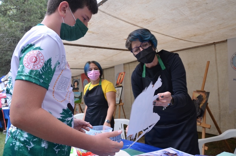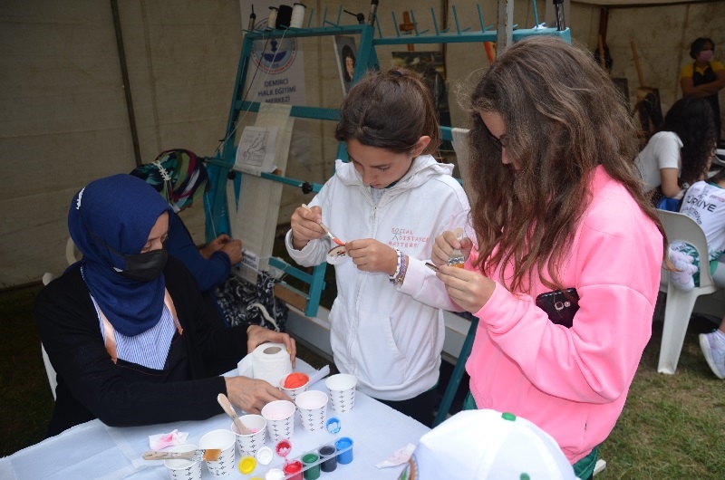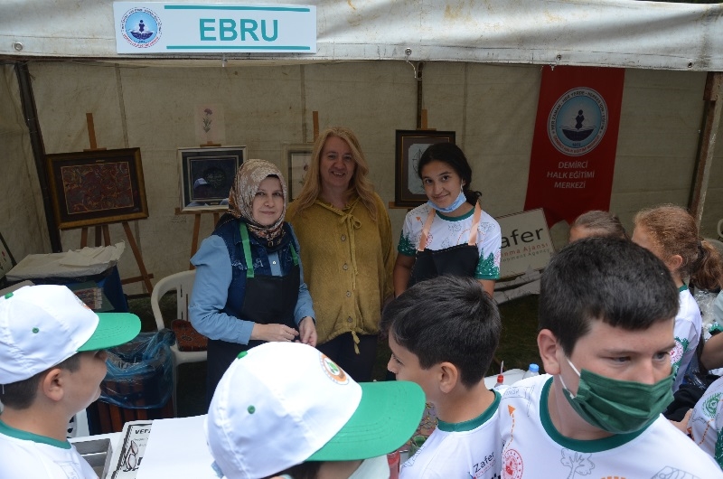 Sarıçayır kamp alanında 32 oryantiring sporcusuna Demirci Halk Eğitimi Merkezi Müdürlüğünce kurulan eğitim stantlarında, minyatür halı, kağıt rolyef, ahşap tasarım, resim ve ebru sanatı eğitimleri verilecek.