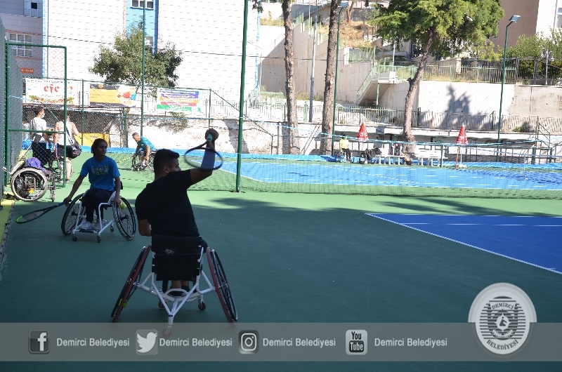 Demirci'de Türkiye Bedensel Engelliler Spor Federasyonunca düzenlenen Tekerlekli Sandalye Tenis Akıncıları Türkiye Şampiyonası başladı.