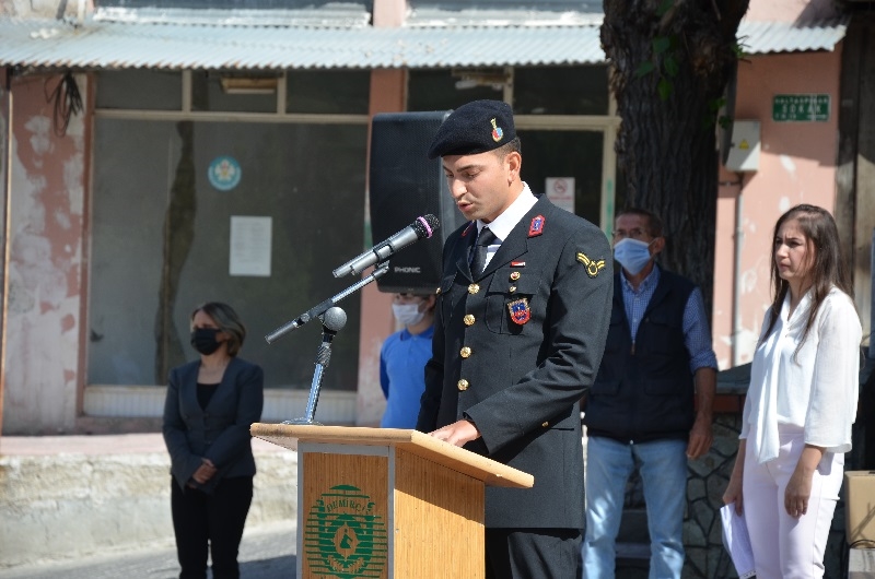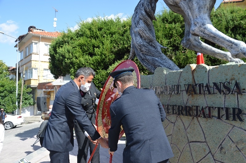 Saygı duruşu ve İstiklal marşının okunmasının ardından Muharip Gaziler Derneği Üyesi Gazi Himmet Çetin ve İlçe Jandarma Komutanlığından Astsubay Çavuş Yasin Saklar tarafından günün anlam ve önemini belirten konuşmalar yapıldı.
