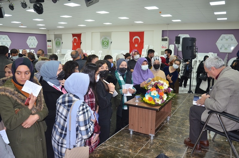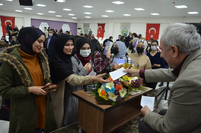 Prof. Dr. Nurullah Genç, programa katılan gençlere şiir kitaplarını imzalayarak, hatıra fotoğrafı çektirdi.