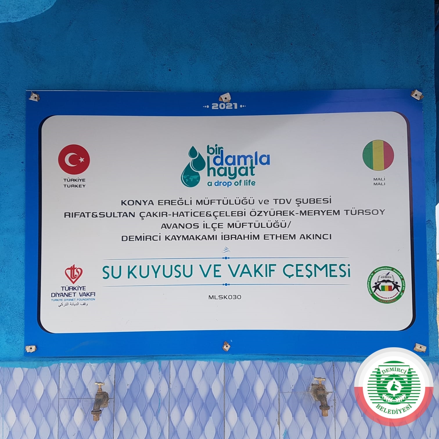 Türkiye Diyanet Vakfı Demirci Şubesine yapılan bağışlarla Batı Afrika Ülkesindeki Mali'de yaşanan susuzluğa çare olmak için su kuyusu açtırdı.