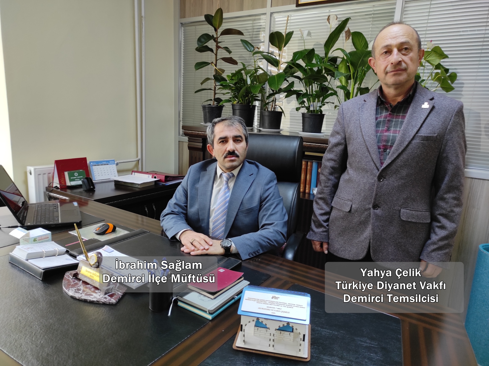 Müftü Sağlam, Türkiye Diyanet Vakfı tarafından açılan su kuyusunun minyatürü kururumuza gönderildi. Bu minyatür su kuyusunu Demirci Akıncıları Kahraman Köşesine sergilenmesi için koyacağız" dedi.
